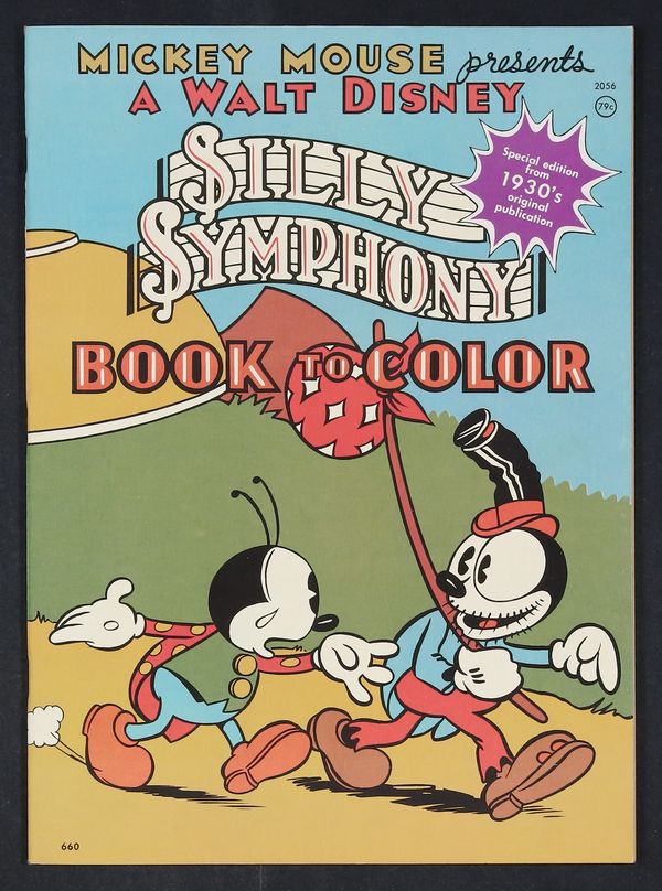 $15.99#2056 Silly Symphony: Book to Color (Bucky Bug cover) 1975 reprint. Reprints # 660 from the 1930's. 52 pages. B&W. Treasury-sized. Coloring Books, Text Stories, & Comics. Cover price $0.79.