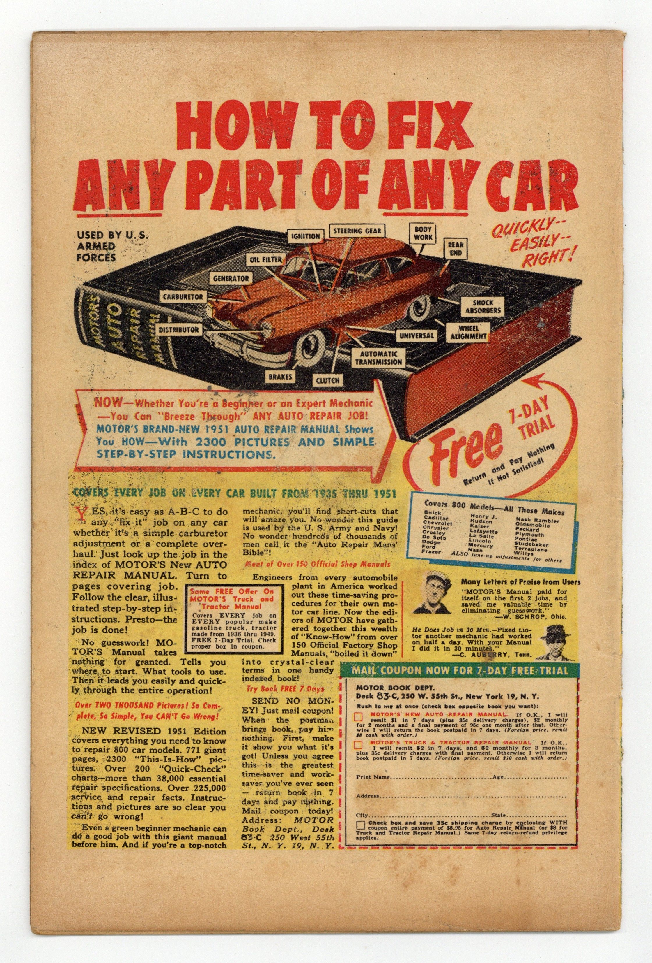 $75.00Cover by Lee Elias. Stories and art by Jack Sparling, Rudy Palais, Lee Elias, and Bob Powell. Tales of war from Harvey, published as the Cold War was heating up. 15 men and a tank are cut off by enemy troops 100 miles north of Seoul. Fats Miller is just the cook for Company B, until the battle of Hill 609. Plus true tales of American war heroes. Cut Off!; Fool's Mission!; He Did It for the Kid!; American Heroes; Unknown Glory!; Hill 609!; Under Fire! 36 pages, full color. Cover price $0.10.