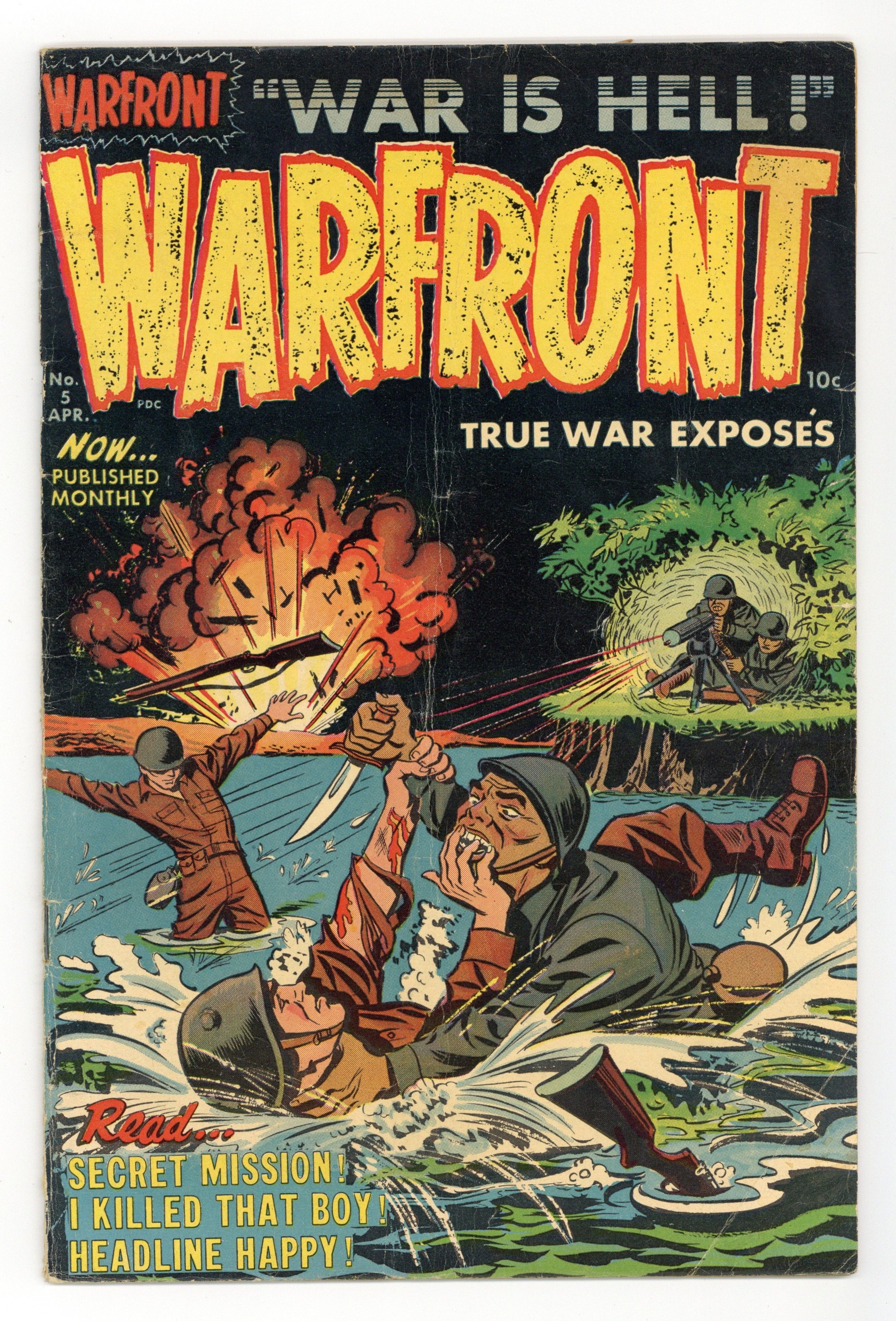 Stories and art by Rudy Palais and Bob Powell. Tales of war from Harvey, published as the Cold War was heating up. A doctor must make a daring parachute jump behind enemy lines to stem an epidemic. A letter from home brings bad news for soldier Jerry, stationed on the front. Fighter pilot Kelly would rather be a war hero than a team player, until he must make a crucial choice. Cut Off!; Secret Mission; I Killed That Boy!; Volunteer!; Skippers in Action; The Kid!; Headline Happy; The Letter; Operation... Contact! 36 pages, full color. Cover price $0.10.