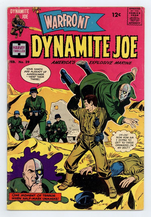 Final issue. Dynamite Joe: "Half-Mask Strikes Back" ch.1 - "Watch the Birdie..and Die" ch.2 - "Stare into the Face of Half-Mask" ch.3, "The Trap", The Lone Tiger in "Revenge of the Dragon". Art by Bill Draut, Wally Wood (3 pages), and George Roussos. 36 pages, full color. Cover price $0.12.