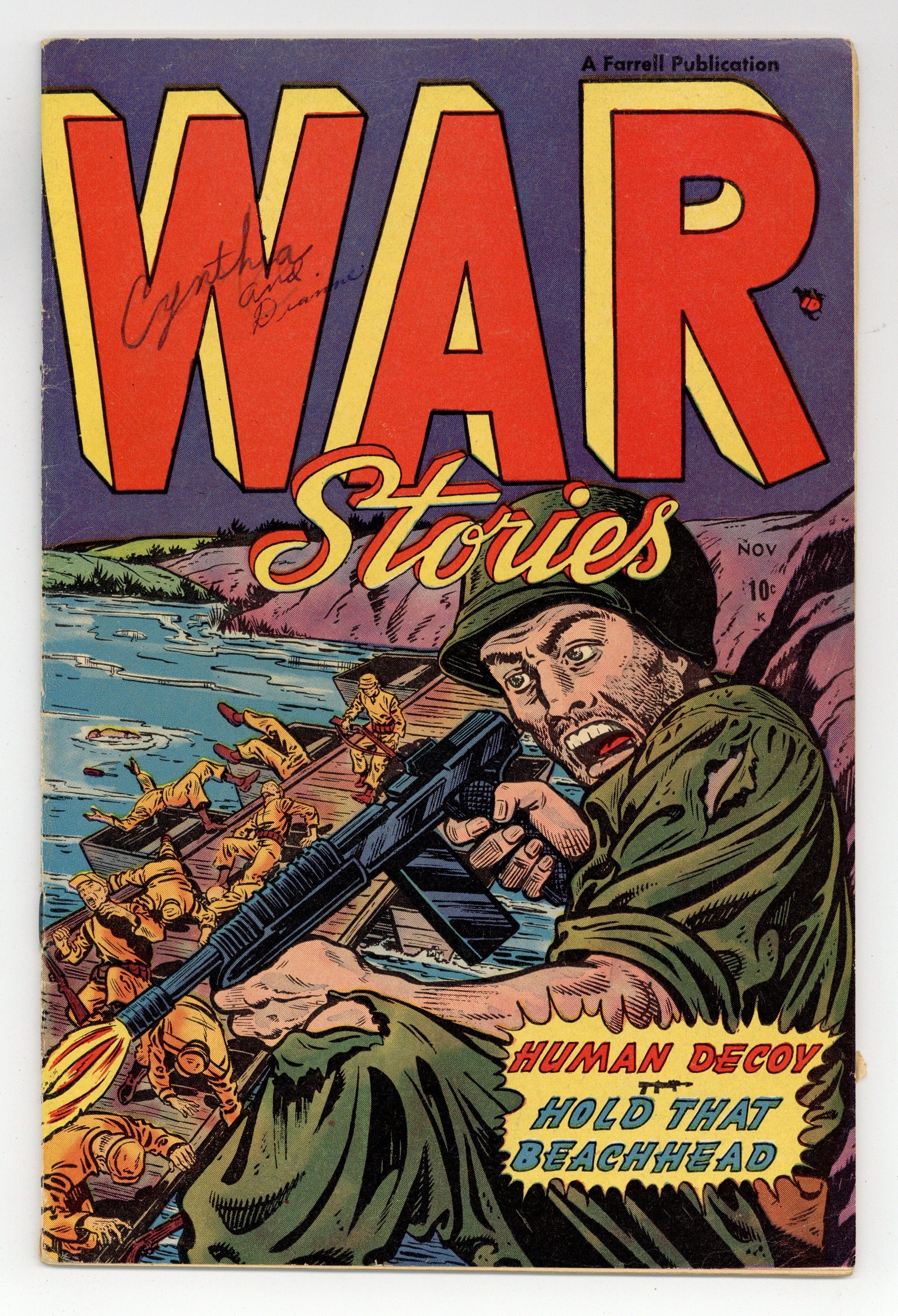 Ajax-Farrell presents battlefield stories from the Korean conflict. A squad is assigned to hold a beachhead at any cost. Two soldiers find themselves behind enemy lines and decide to do as much damage as they can. A letter from home gives a soldier a stark contrast with his war-torn surroundings. Hold That Beach-Head; Narrow Outlook; Two-Man Invasion!; Letter From Home. 32 pages, Full Color. Cover price $0.10.