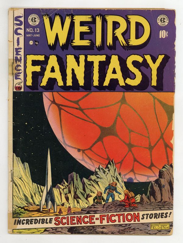 "The End" (art by Wally Wood), "The Trip" (art by Jack Kamen), "Home to Stay" (art by Wood; unauthorized swipe of two Ray Bradbury stories, "Kaleidoscope" and "Rocket Man"), and "Don't Count Your Chickens" (art by Joe Orlando). The letters page features a well-reasoned response from the editors to a letter from a parent critical of SF and horror comics such as those published by EC. Al Feldstein classic outer space cover. NOTE: See 1st Series for 1950 #13.