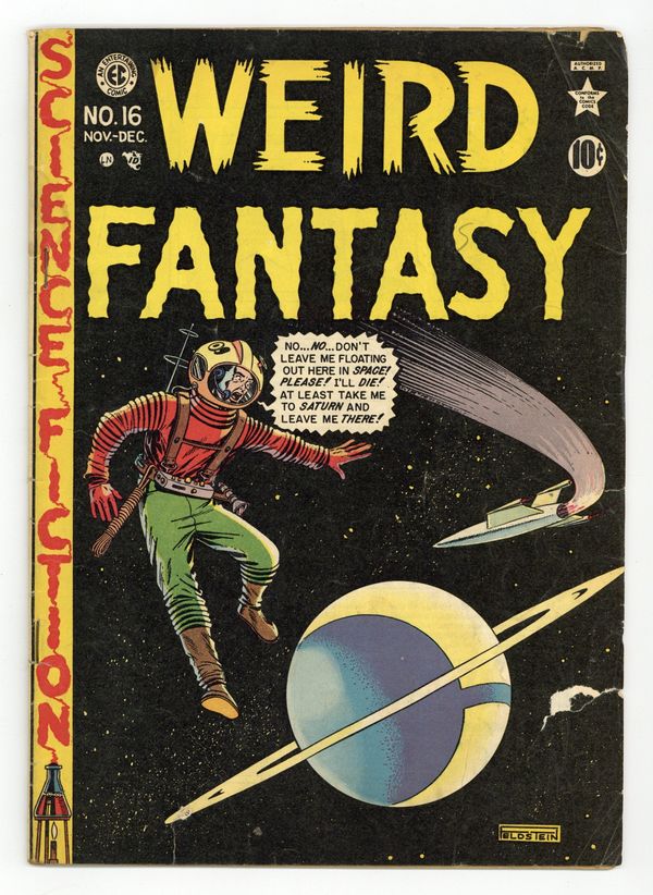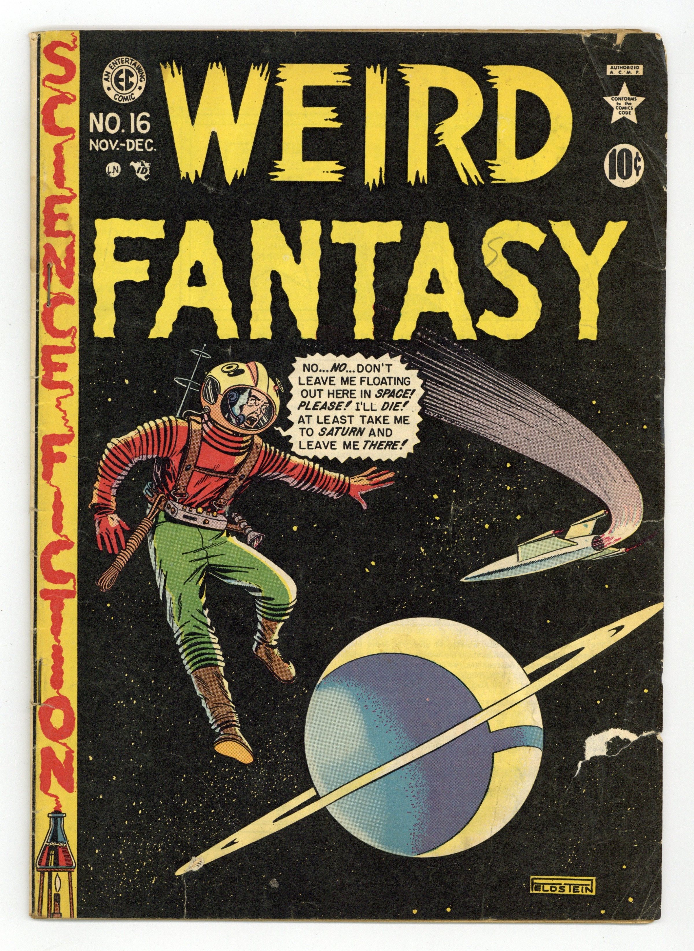 4th ISSUE in series (see note following) - Al Feldstein classic outer space cover. "The Last City" (art by Feldstein), "The Mysterious Ray From Another Dimension" (script and art by Harvey Kurtzman), "Second Childhood" (art by Jack Kamen), and "A Trip To a Star" (art by Wally Wood). Featured in Frederic Wertham's Seduction of the Innocent. NOTE: See 2nd Series for 1952 #16. Cover price $0.10.