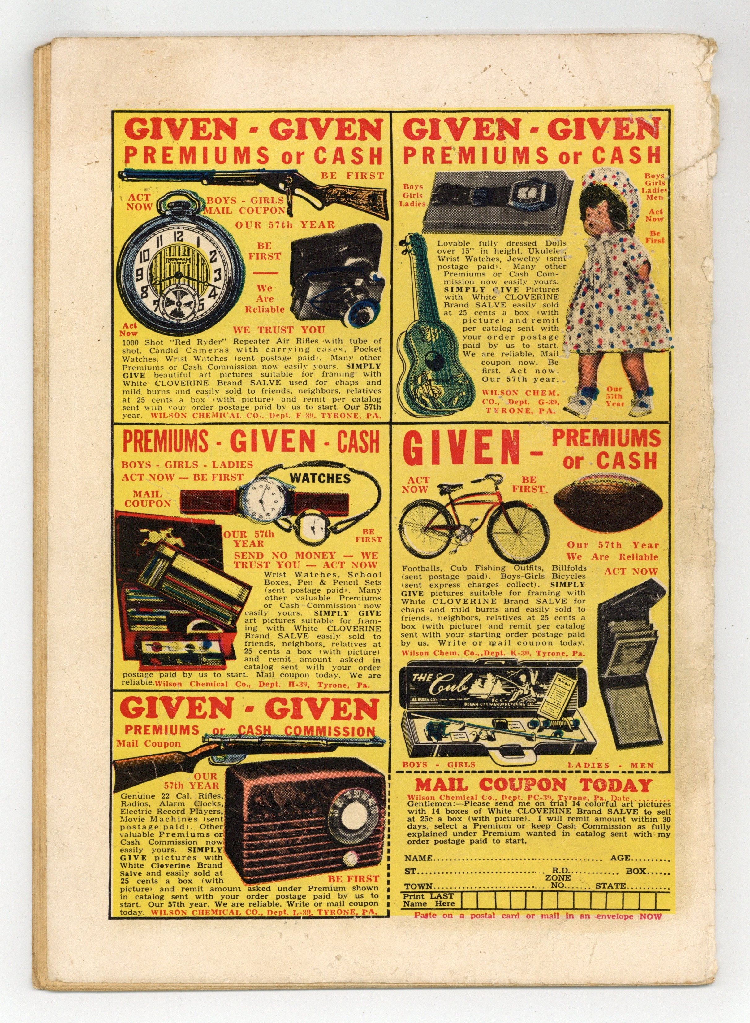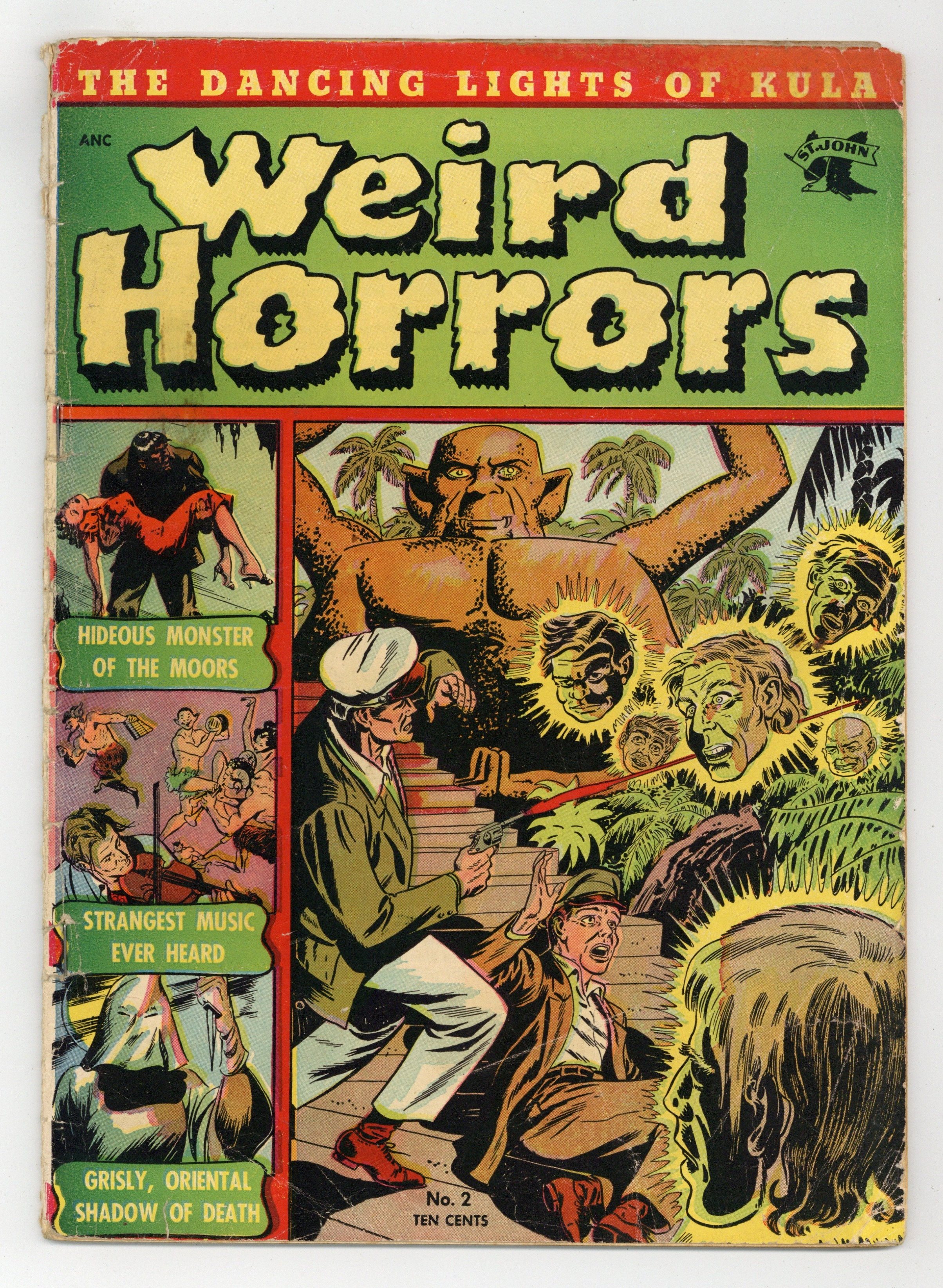 Stories and art by Paul Gattuso, Rafael Astarita, and Enrico Bagnoli. Classic pre-Code horror from St. John. A violinist falls under the spell of a cursed Stradivarius. A man assumes the guise of an avenging specter to take on the ruthless gang known as the Vultures. Treasure hunters dare to steal a cursed ruby from an ancient idol. The Fatal Forecast; The Violin of Death; Ghost Brain; Monster of the Moors; Don Pedro Hangs the Vultures; The Dancing Lights of Kula. 32 pages, Full Color. Cover price $0.10.