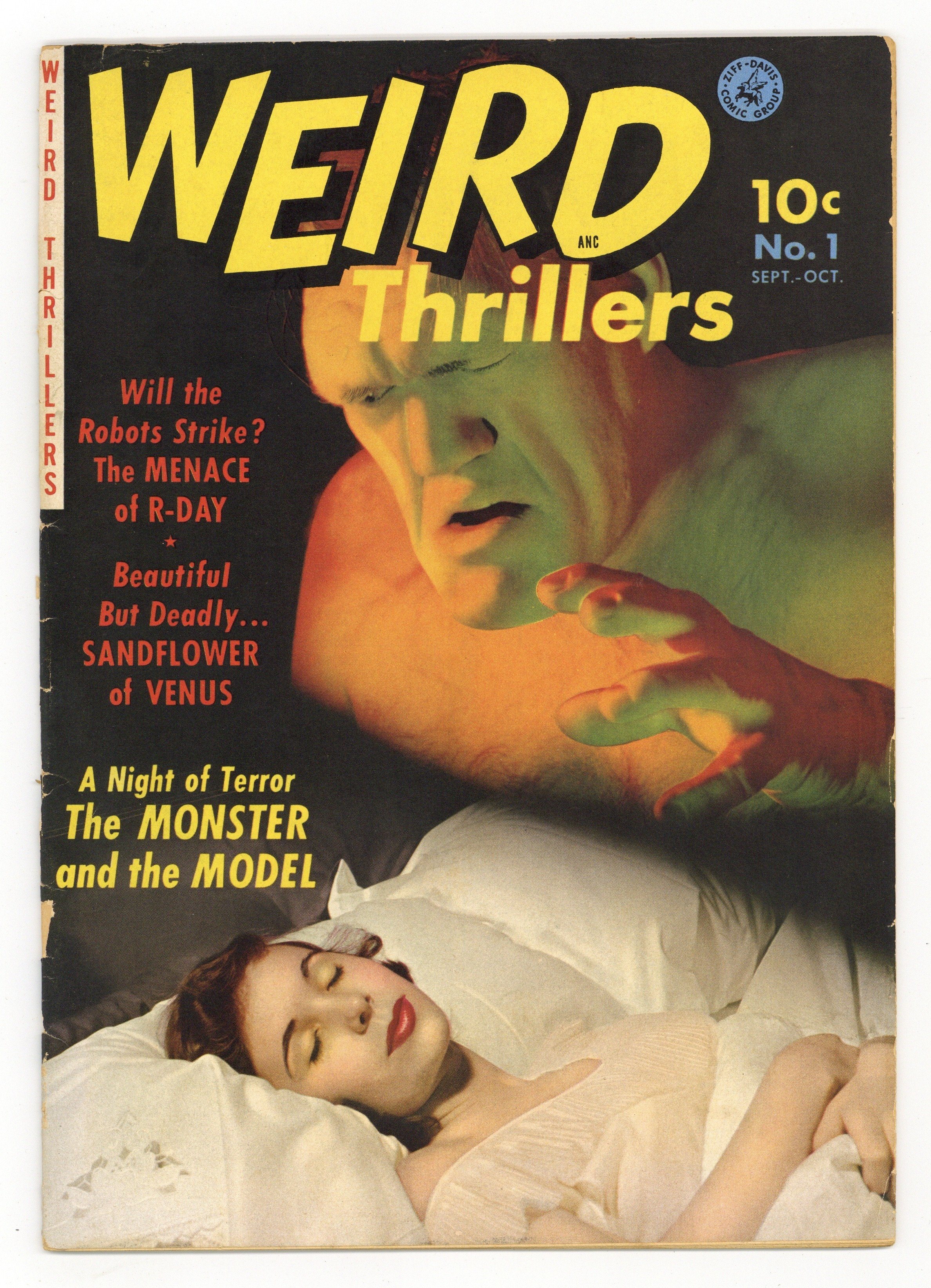 Photo cover features classic horror actor Rondo Hatton. Stories and art by Dan Barry, Murphy Anderson, Sy Barry, Ross Andru, George Olesen, John Prentice, Bob Powell, and Pete Morisi. Classic 1950s science-fiction and horror tales from Ziff-Davis. In the Venusian city of Spaceport, a hive of scum and villainy, Brad's girlfriend cajoles him into going after the priceless Sandflower. But beautiful Venusian Melinda accompanies him, warning that even if they escape the Swamp Spider, they must still elude the space pirates. In another story, with art by future Marvel legend Ross Andru, Bruce and Vina accidentally discover that the President of Earth has been replaced by a robot. Our Amazing Universe; Sandflower of Venus; The Menace of R Day; The Canals of Mars; Terror from the Depths; The Monster and the Model; Measuring a Comet's Tail; One-Sided Life. 36 pages, Full Color. Cover price $0.10.