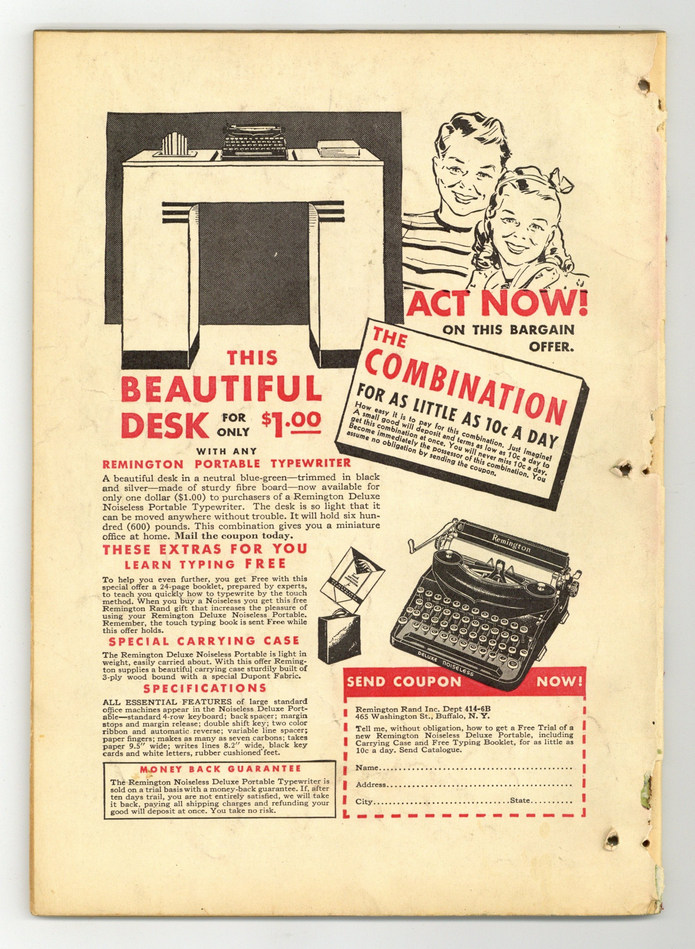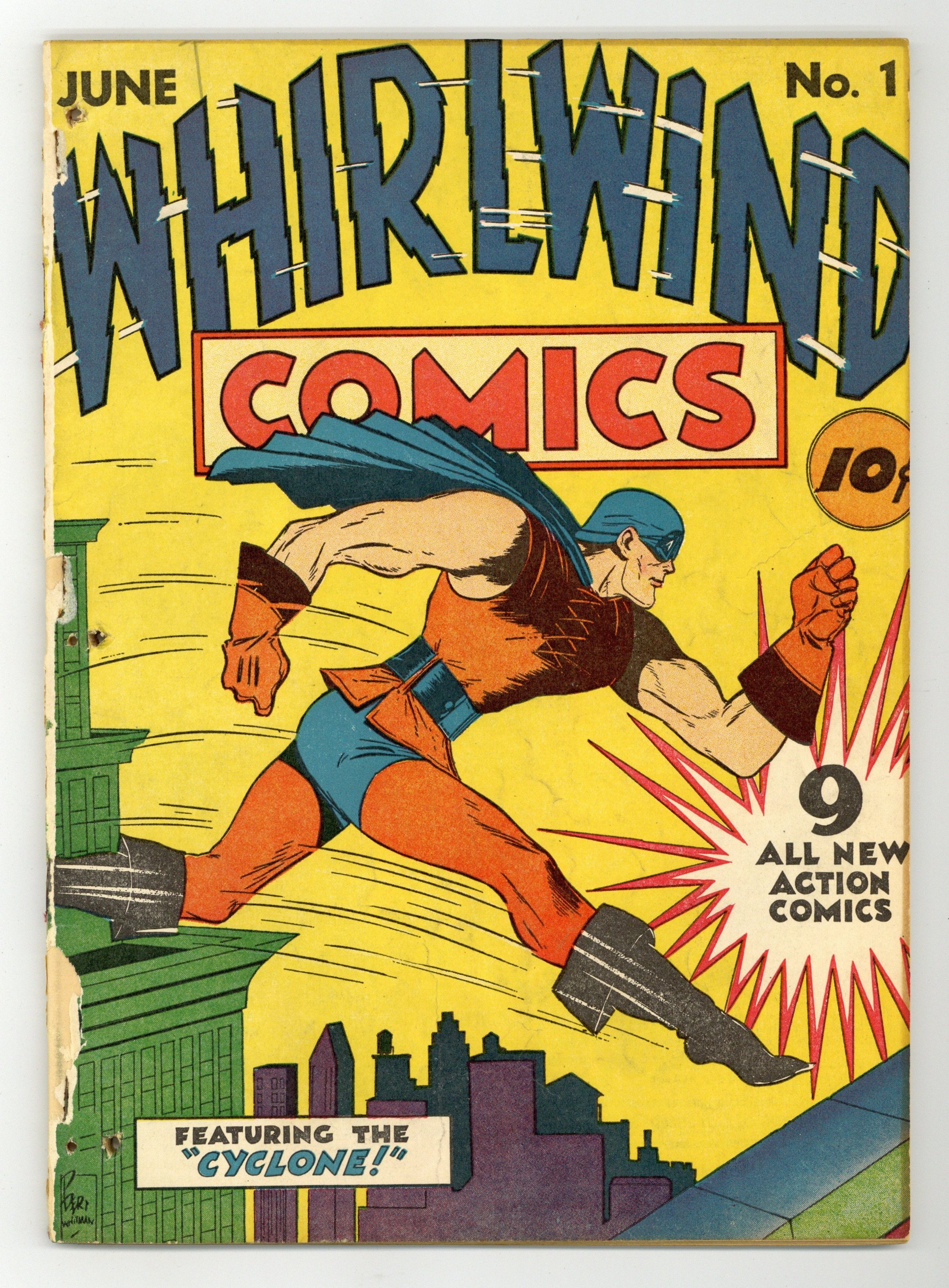 Cover by Bert Whitman. Stories and art by Bert Whitman, V. J. Kay, Robert Turner, Henry Boltinoff, Rudolf Johnson, and Pagsilang Isip. The adventures of Cyclone and other early superheroes from the Golden Age of comics. Years of martial-arts and acrobatic training transform Peter Blake into the masked crimefighter known as Cyclone. Inspector Blake of Scotland Yard is called in by the Prime Minister when a threat is made on the life of explorer Sir Neville, but surely his butler is not the culprit. Canadian Mountie Rex Royce tracks a killer deep into the frozen wastes of the Canadian north. Plus a story by pioneering Filipino-American artist Pagsilang Rey Isip. Cyclone; Wings Bordon; Inspector Blake; Lt. Jim Landis; Jungle Madness; Rex Royce; Dick Blaze; Bruce Barlow; Doodad the Detective: The 3 Spooks; Smash Dawson and the Magic Mandarin. 64 pages, Full Color. Cover price $0.10.