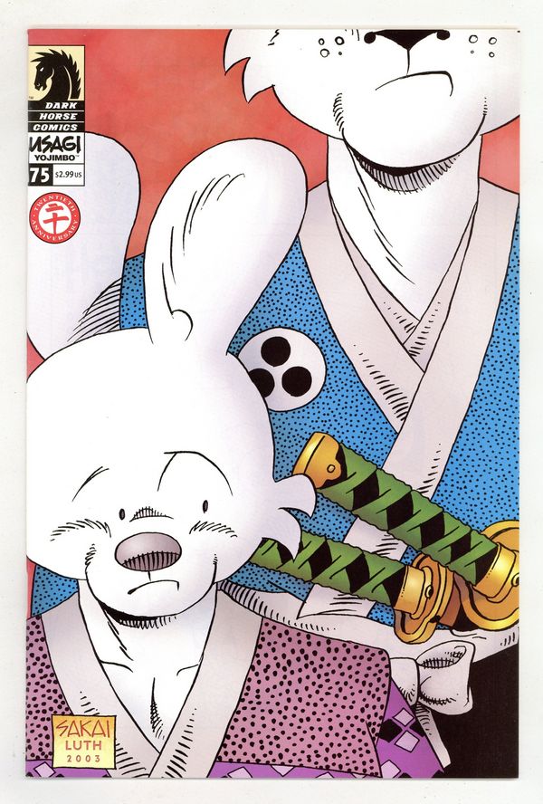 Published Apr 2004 by Dark Horse.$15.00(W/P) Stan Sakai; Internationally celbrated creator Stan Sakai concludes the gripping two-part "Hokashi" storyline in his multi-Eisner Award winning adventure series Usagi Yojumbo. After surviving recent life-threatening incidents, wandering ronin Usagi and his young ward Jotaro are joined in thier travels by Katsuichi-sensei and his student Shunji. In his breif reprieve, Usagi debates if he can risk keeping the secret of Jotaro's parentage - the two could soon be parted for years, but does that justify shattering their trust? Usagi had better decide soon, though - they might not live long enough for it to matter! Cover price $2.99.