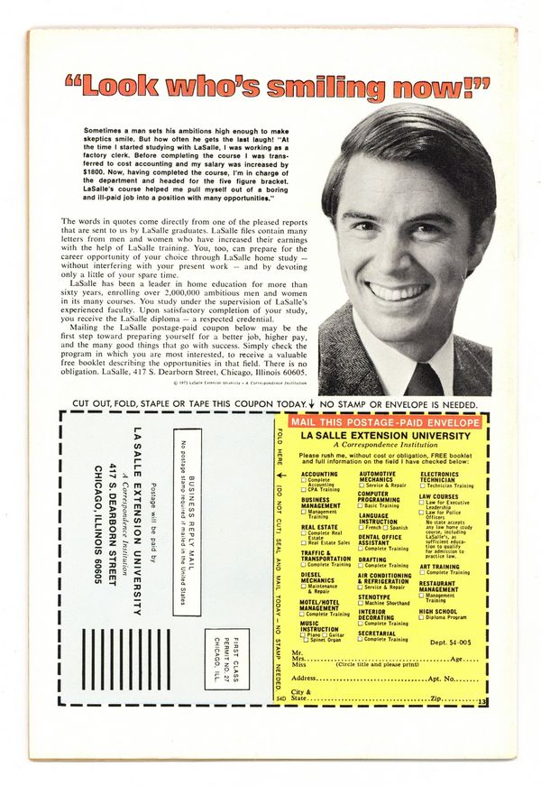 "The Power of Babel!" Guest-starring Captain Marvel. Script by Steve Englehart. Art by John Buscema (breakdowns) and Dave Cockrum (finishes). Cover by Ron Wilson and John Romita. Story continues from Captain Marvel 32. Captain America returns to the Avengers just in time for an out-of-this-world adventure! Earth's Mightiest Heroes blast off into outer space to intercept Thanos' awesome armada headed towards Earth! The Avengers attack the alien starships and inflict heavy damage until they bump into a solid black force field! What's hiding behind the imposing barrier? The Vision, Scarlet Witch, Swordsman, and Mantis penetrate the force field and discover the mad Titan's massive command ship! And hordes of aliens inside! But these are four mighty avengers! With skill and teamwork, they disable the ship's universal translator and throw the entire attack fleet into chaos! Have the Avengers finally derailed Thanos' plan for conquest of the cosmos? Story concludes in Captain Marvel 33. Cameo appearances by Libra, Lou-Ann, Thanos, and the Skrulls. Avengers Lineup: Black Panther, Captain America, Iron Man, Mantis, Scarlet Witch, Swordsman, Thor, and the Vision. (Note: The letters page contains Marvel Value Stamp Series A #69 Marvel Girl.) 36 pages Cover price $0.25.