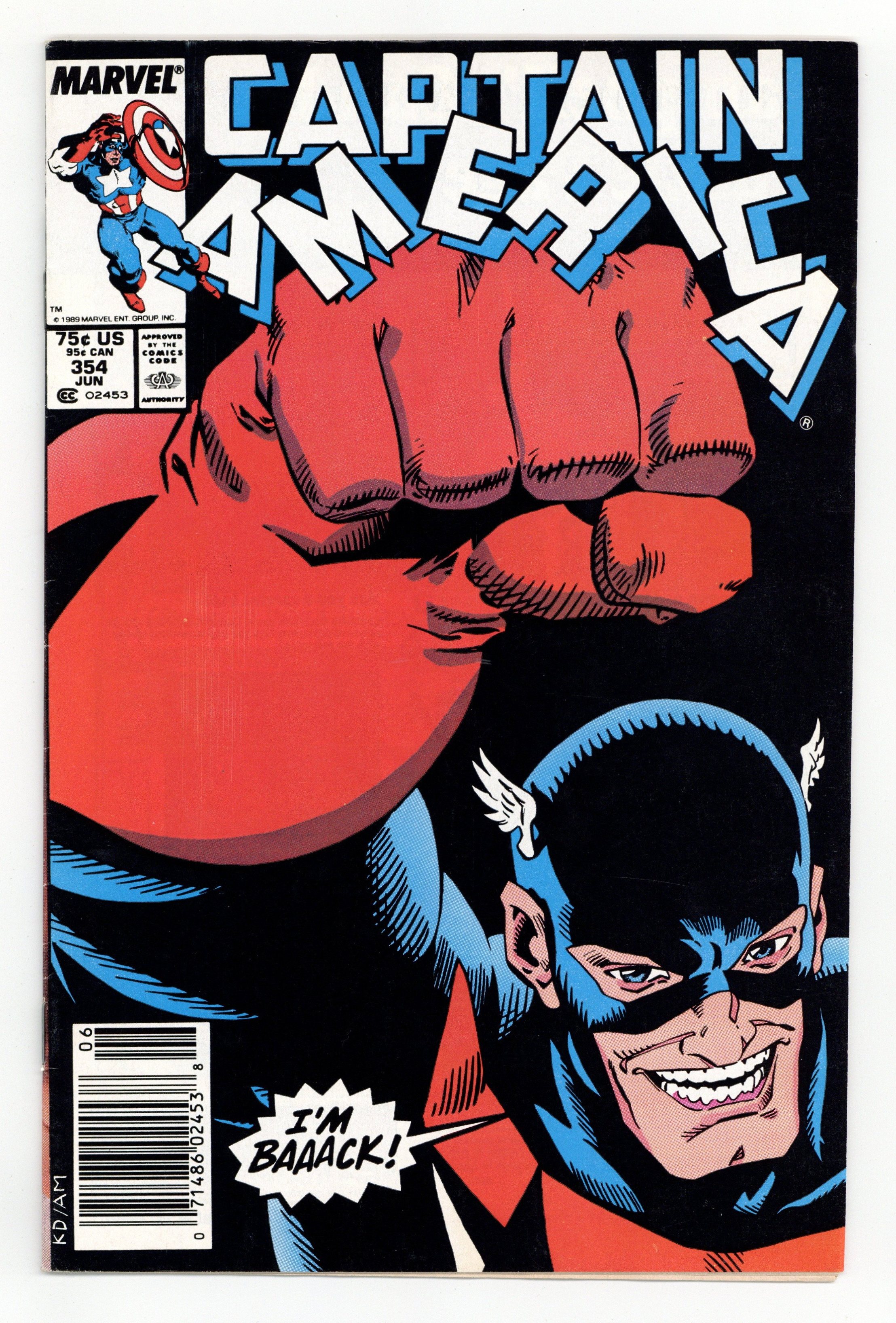 Tags: Marvel Legacy Numbering: Captain America (part 354), Captain America$14.751st app of U.S. Agent in "Reawakening" Story by Mark Gruenwald. Art by Kieron Dwyer and Al Milgrom. Captain America travels to Waltham, Massachusetts to recover the robot body of the Fourth Sleeper (last seen in Captain America 102). What's going to happen if the Sleeper awakens? Meanwhile, the Commission has a new prime operative: the U.S. Agent! First appearance of the U.S. Agent (aka John Walker). (Note: The adventures of the U.S. Agent continue in Avengers West Coast 44.) 36 pages Cover price $0.75.