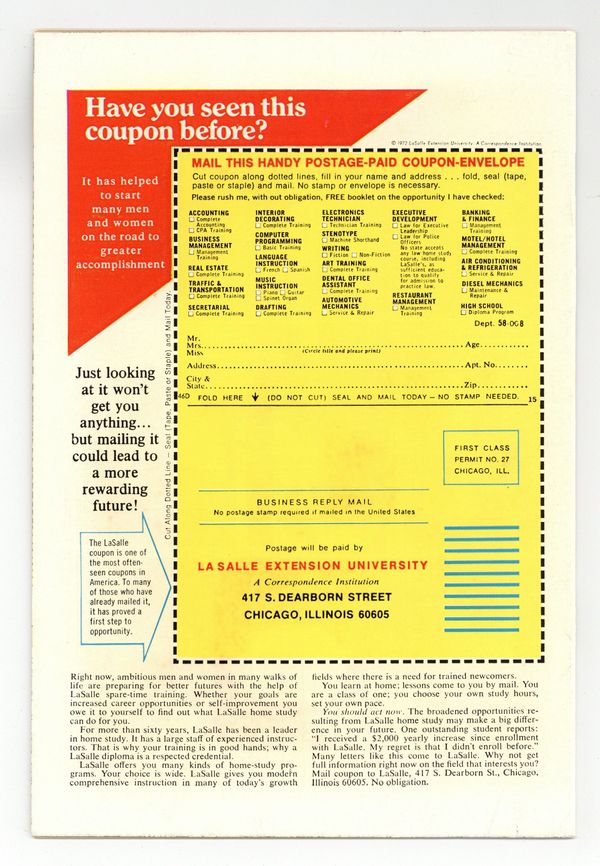 $34.00"Bid Tomorrow Goodbye!" Script by Steve Englehart. Art by Sal Buscema (breakdowns) and Joe Staton (finishes). Cover by Ron Wilson and Mike Esposito. A bright shining star appears over Avengers Mansion! What does the radiant beacon foretell? Kang the Conqueror thinks he knows! And thus begins the Celestial Madonna saga! The 41st century Master of Time and his macrobots attack the Avengers outside their mansion! After overwhelming the six avengers, Kang absconds with five of them plus Agatha Harkness! The Conqueror deems the Swordsman as unworthy and leaves him behind. Will Kang end up regretting that decision? The former sword-wielding super-villain certainly has his work cut out for him! However, the Swordsman catches a big break when Agatha Harkness telepathically reveals Kang's hideaway! The centuries-old pyramids of Egypt! After arriving in the Egyptian desert, the Swordsman desperately needs an ally! Could one of the ancient pharaohs still be lurking around to help? Story continues in Giant-Size Avengers 2. Cameo appearance by Rama-Tut. Avengers Lineup: Iron Man, Mantis, Scarlet Witch, Swordsman, Thor, and the Vision. (Notes: The classic Celestial Madonna storyline runs through Avengers 129-135 and Giant-Size Avengers 2-4. Kang previously battled Earth's Mightiest Heroes in Avengers (1st series) 71. The letters page contains Marvel Value Stamp Series A #88 The Leader.) 36 pages Cover price $0.25.