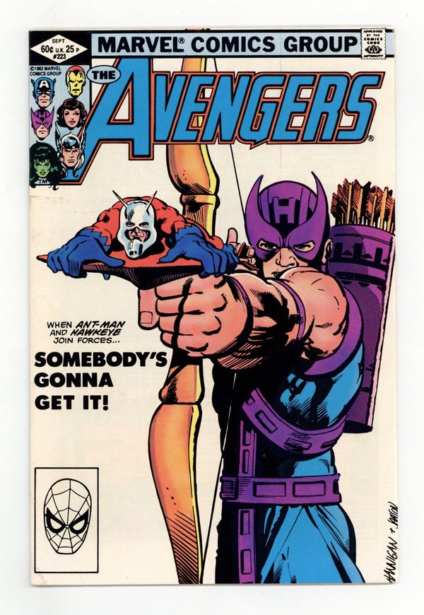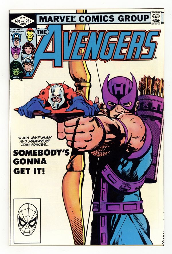 Direct Edition. "Of Robin Hoods and Roustabouts" Guest-starring Ant-Man. Script by David Michelinie. Pencils by Greg LaRocque. Inks by Brett Breeding and helpers. Cover by Ed Hannigan and Klaus Janson. On a sunny afternoon in Nassau County, Clint Barton and Scott Lang attend a traveling carnival. Scott is there having fun with his daughter enjoying the attractions, while Clint is following a lead concerning possible criminal activity! Hawkeye's and Ant-Man's paths collide when a super-villain is discovered at the carnival! It's the Taskmaster! The man with the photographic reflexes! And inside a giant circus tent, Ant-Man and the ace archer will try to cancel the Taskmaster's act! Cameo appearances by Captain America, Iron Man, She-Hulk, and the Wasp. (Notes: The Taskmaster previously appeared in Marvel Team-Up 103. The back cover features a Megaforce ad drawn by William Stout.) 36 pages Cover price $0.60.