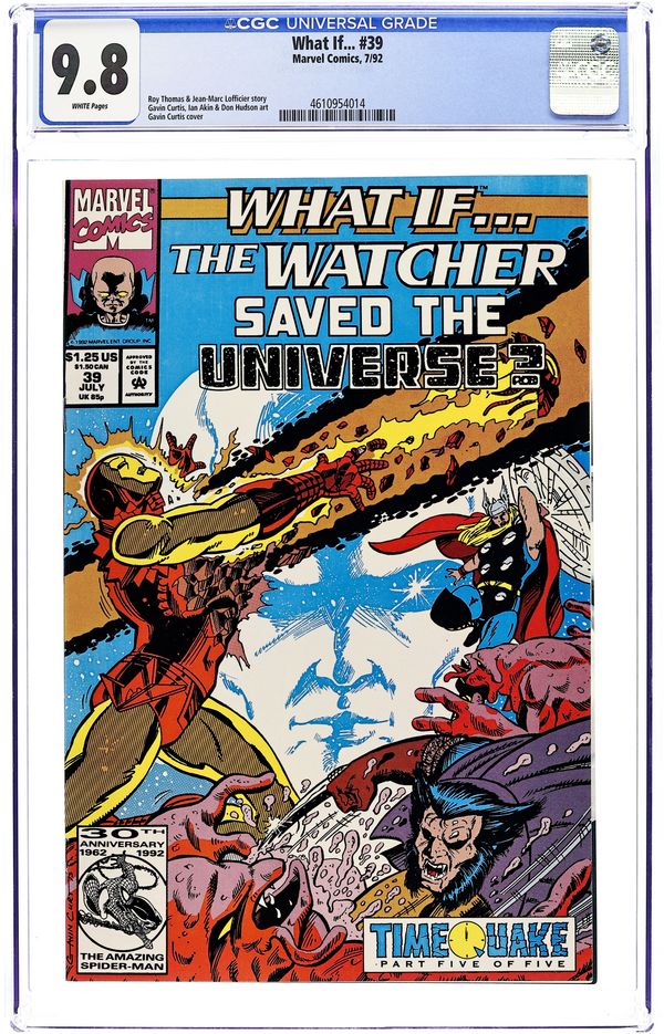 Cover pencils by Gavin Curtis. What if the Watcher Saved the Multiverse (Timequake pt. 5), script by Roy Thomas, Jean-Marc Lofficier [as R.J.M. Lofficier], and Randy Lofficier [as R.J.M. Lofficier], pencils by Gavin Curtis, inks by Ian Akin and Don Hudson; Immortus is stopped by alternate FFs and the Watcher. What if Magneto was Stuck in an Elevator with Colossus, Iron Man, and Doctor Doom?, script and pencils by David Cullen, inks by Steve Montano. 36 pgs. $1.25. Cover price $1.25.