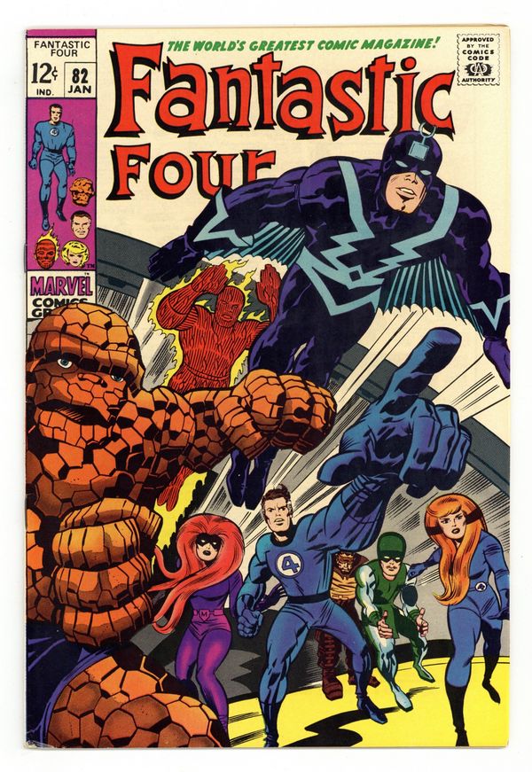 Tags: Fantastic Four$66.00"The Mark of the Madman!" Part 1 of 2. Guest-starring the Inhumans. Script by Stan Lee. Pencils by Jack Kirby. Inks by Joe Sinnott. Cover by Jack Kirby and Joe Sinnott. Crystal is excited about joining the Fantastic Four! However, before she can make it official, the royal family in Attilan must give their approval! When Lockjaw teleports to the Baxter Building, the new fabulous foursome prepare to jump to the Hidden Land! But suddenly a swarm of Alpha Primitives emerges from behind Lockjaw! And in a matter of seconds, they grab Crystal and stun Reed, Ben, and Johnny! What a revoltin' development! Why did Lockjaw betray his mistress? The answer lies within the Great Refuge…and that's where the Thing, Human Torch, and Mr. Fantastic are going to next! (Note: Maximus previously appeared in Incredible Hulk Annual 1.) 36 pages Cover price $0.12.