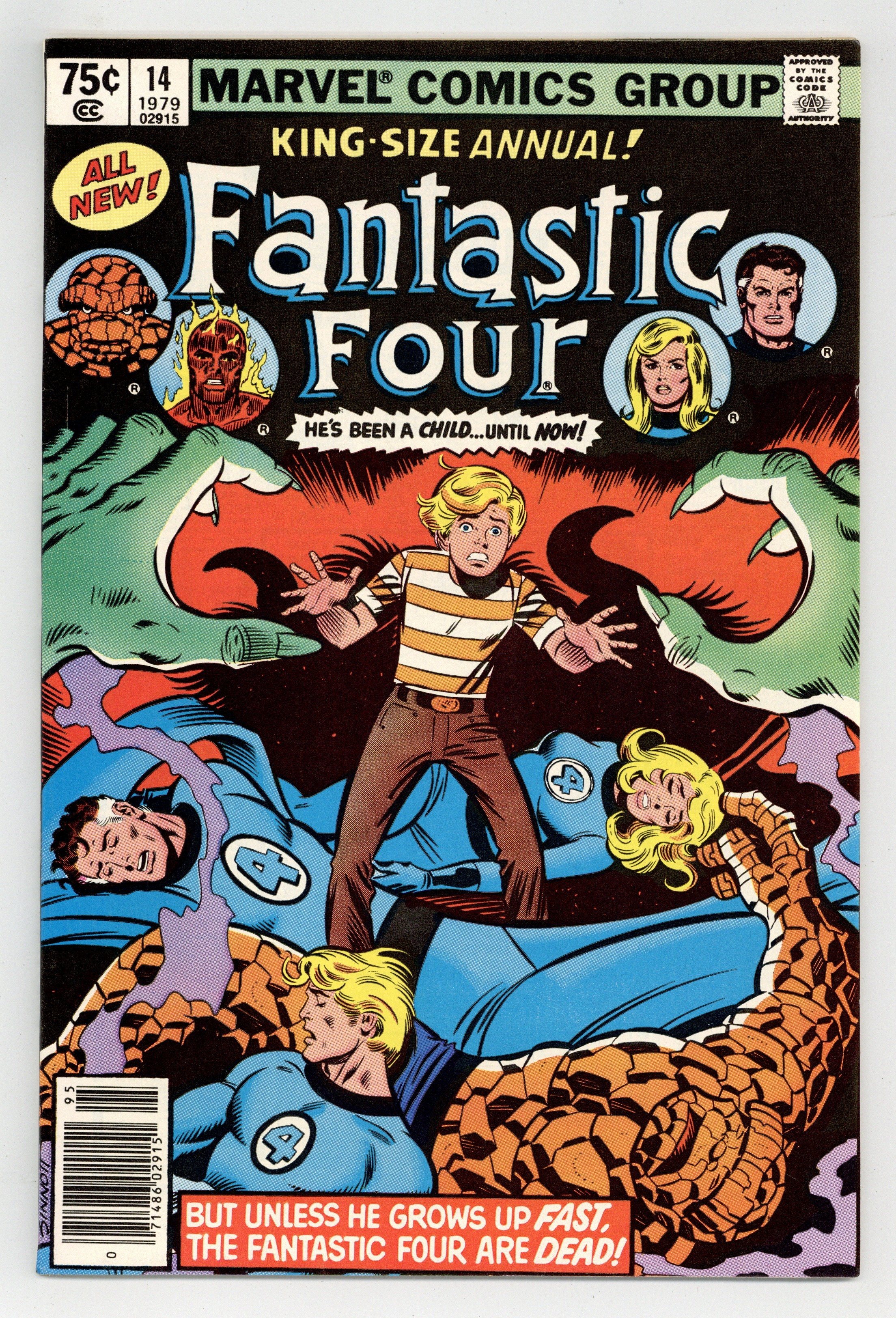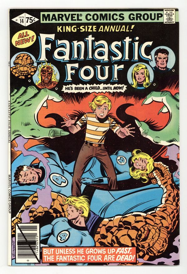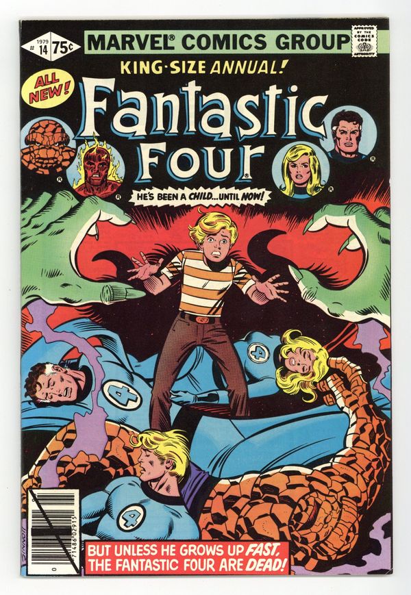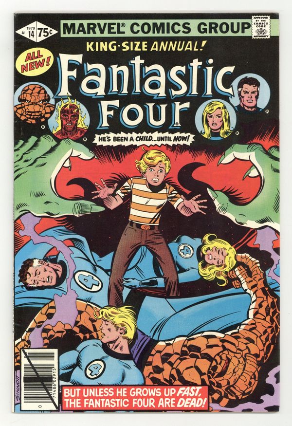 $18.25"Cat's Paw!" Written by Marv Wolfman and George Perez. Pencils by George Perez. Inks by Pablo Marcos. Cover by Joe Sinnott. The story starts with a bang as the Fantastic Four chase down the Sandman to stop a bank robbery! Afterwards, Reed, Sue, Ben, and Johnny return to the Baxter Building and agree to take a vacation to Colorado with Agatha Harkness. A vacation to the Rocky Mountains sounds great, but perhaps somewhere besides New Salem! Unbeknownst to the fabulous foursome, the Salem Seven are lying in wait to ambush them! And then steal the FF's powers to bring Nicholas Scratch back to Earth's realm! Back in New York City, the cataclysmic confrontation takes place: Agatha Harkness and young Franklin vs. Nicholas Scratch and the Salem Seven! Cameo appearances by Captain America, Captain Marvel, Falcon, Iron Man, Ms. Marvel, Nighthawk, Vision, Wonder Man, and Peter Parker. "A Gallery Of Famous Fantastic Four Foes" Script by Peter Gillis. Art by Keith Pollard and Pablo Marcos. (Notes: The Salem Seven previously appeared in Fantastic Four 186 and appear next in Fantastic Four 223.) 52 pgs. Cover price $0.75.