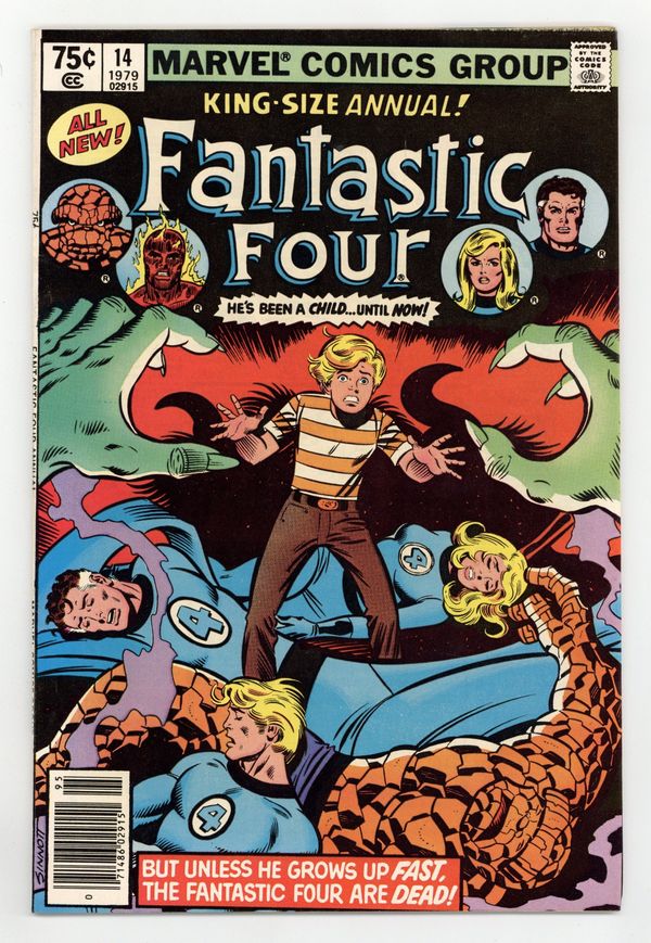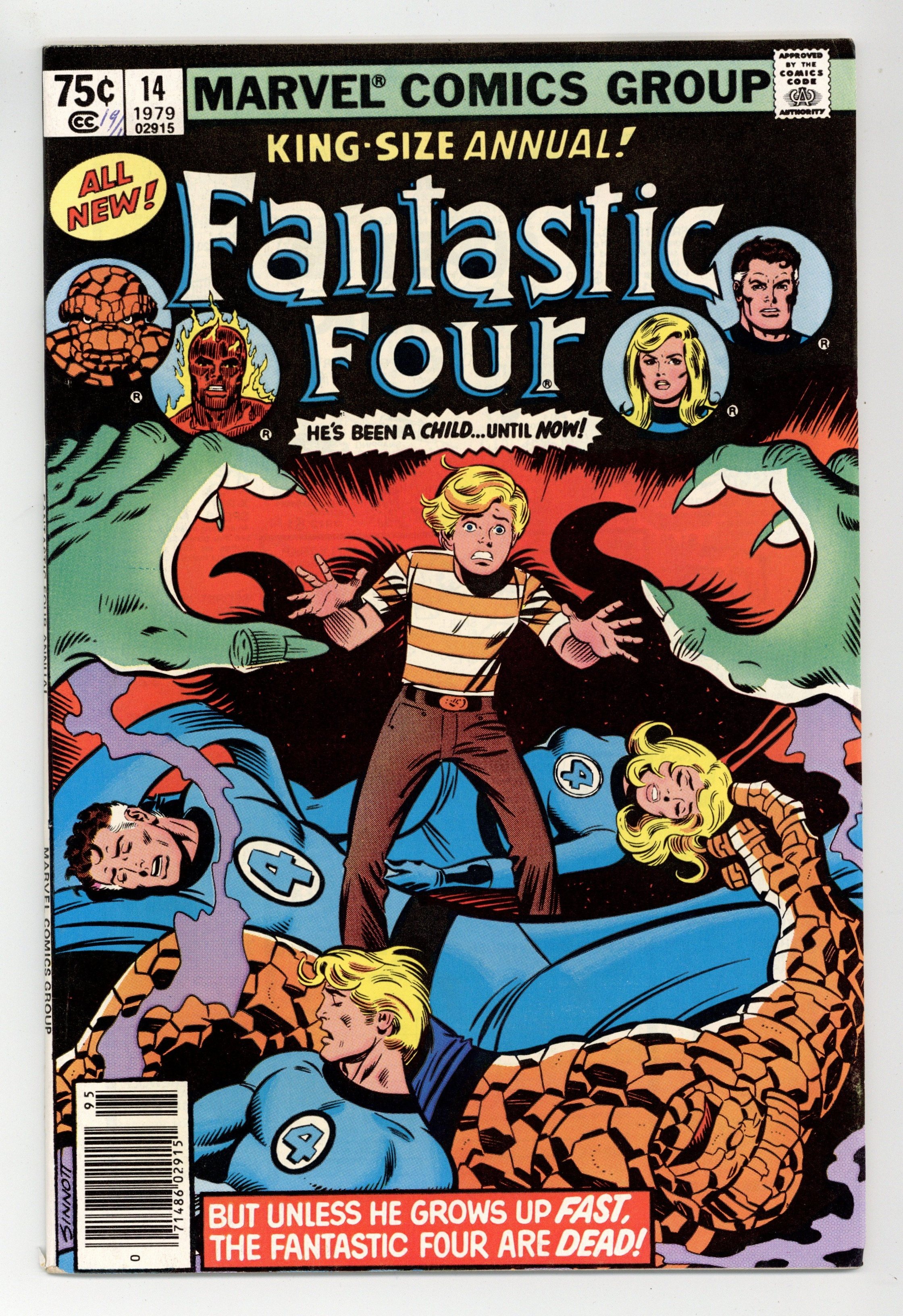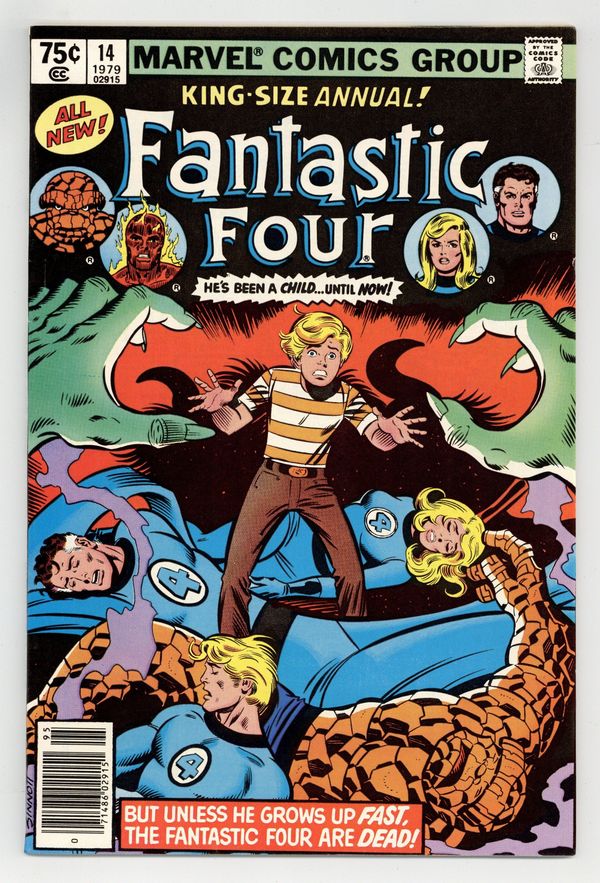 $22.00"Cat's Paw!" Written by Marv Wolfman and George Perez. Pencils by George Perez. Inks by Pablo Marcos. Cover by Joe Sinnott. The story starts with a bang as the Fantastic Four chase down the Sandman to stop a bank robbery! Afterwards, Reed, Sue, Ben, and Johnny return to the Baxter Building and agree to take a vacation to Colorado with Agatha Harkness. A vacation to the Rocky Mountains sounds great, but perhaps somewhere besides New Salem! Unbeknownst to the fabulous foursome, the Salem Seven are lying in wait to ambush them! And then steal the FF's powers to bring Nicholas Scratch back to Earth's realm! Back in New York City, the cataclysmic confrontation takes place: Agatha Harkness and young Franklin vs. Nicholas Scratch and the Salem Seven! Cameo appearances by Captain America, Captain Marvel, Falcon, Iron Man, Ms. Marvel, Nighthawk, Vision, Wonder Man, and Peter Parker. "A Gallery Of Famous Fantastic Four Foes" Script by Peter Gillis. Art by Keith Pollard and Pablo Marcos. (Notes: The Salem Seven previously appeared in Fantastic Four 186 and appear next in Fantastic Four 223.) 52 pgs. Cover price $0.75.