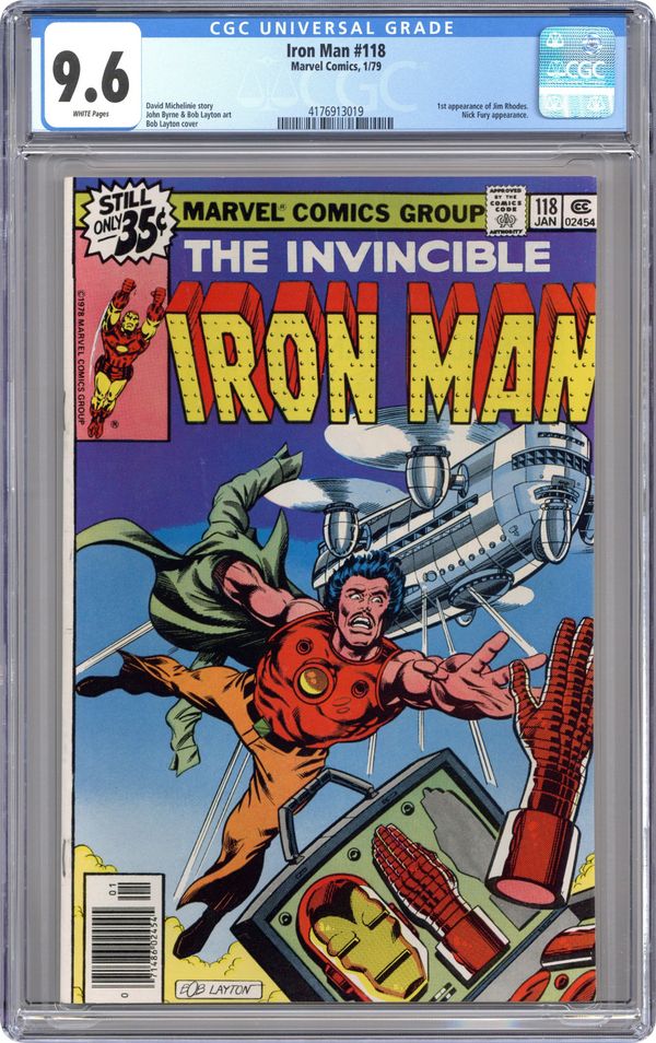 Tags: Marvel Legacy Numbering: Iron Man (part 118), Iron Man$18.00First appearance of James Rhodes in "At the Mercy of My Friends!" Part 1 of 2. Guest-starring Nick Fury. Plot by David Michelinie and Bob Layton. Script by David Michelinie. Art by John Byrne (layouts) and Bob Layton (finishes). Cover by Bob Layton. Tony Stark visits the SHIELD Helicarrier for a NATO conference, but rouge agents throw him out over the skies of Western Europe! Fortunately (as shown on the terrific cover), Tony has his briefcase with him! But can he change into his armor in time? Cameo appearances by Mrs. Arbogast and Bethany Cabe. 32 pages. Cover price $0.35.