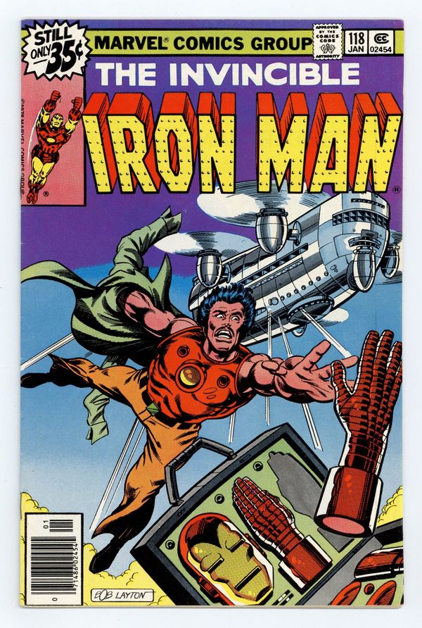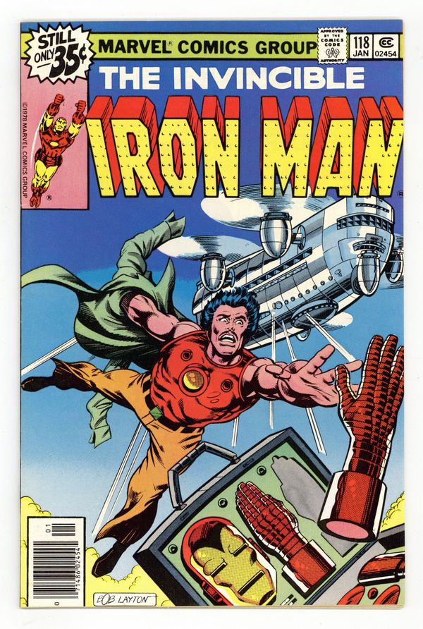 Tags: Marvel Legacy Numbering: Iron Man (part 118), Iron Man$33.50First appearance of James Rhodes in "At the Mercy of My Friends!" Part 1 of 2. Guest-starring Nick Fury. Plot by David Michelinie and Bob Layton. Script by David Michelinie. Art by John Byrne (layouts) and Bob Layton (finishes). Cover by Bob Layton. Tony Stark visits the SHIELD Helicarrier for a NATO conference, but rouge agents throw him out over the skies of Western Europe! Fortunately (as shown on the terrific cover), Tony has his briefcase with him! But can he change into his armor in time? Cameo appearances by Mrs. Arbogast and Bethany Cabe. 32 pages. Cover price $0.35.
