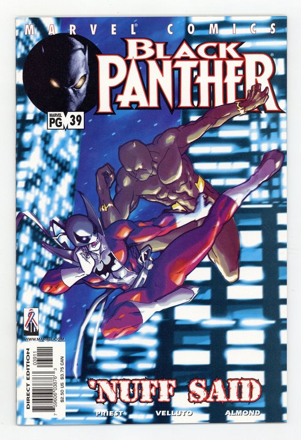 $10.50cover by steve uy christopher priest (w)/sal velluto (p)/bob almond (i) It's Black Panther vs. Iron Fist in 'Nuff Said combat! The karate king of K'un L'un is back, but he's not quite the Iron Fist you remember! Black Panther battles a murderously unhinged Danny Rand while time runs out for Everett K. Ross and, quite possibly, the world! It's super silent fisticuffs between two of the greatest fighters of the Marvel Universe! "If you're looking for an intelligent book that's constantly surprising, respects its readership's IQ, and never fails to deliver, this is the comic for you." -ComicBookGalaxy.com 7-59606-03876-3-03911 (MarvelPG)2.50 Cover price $2.50.
