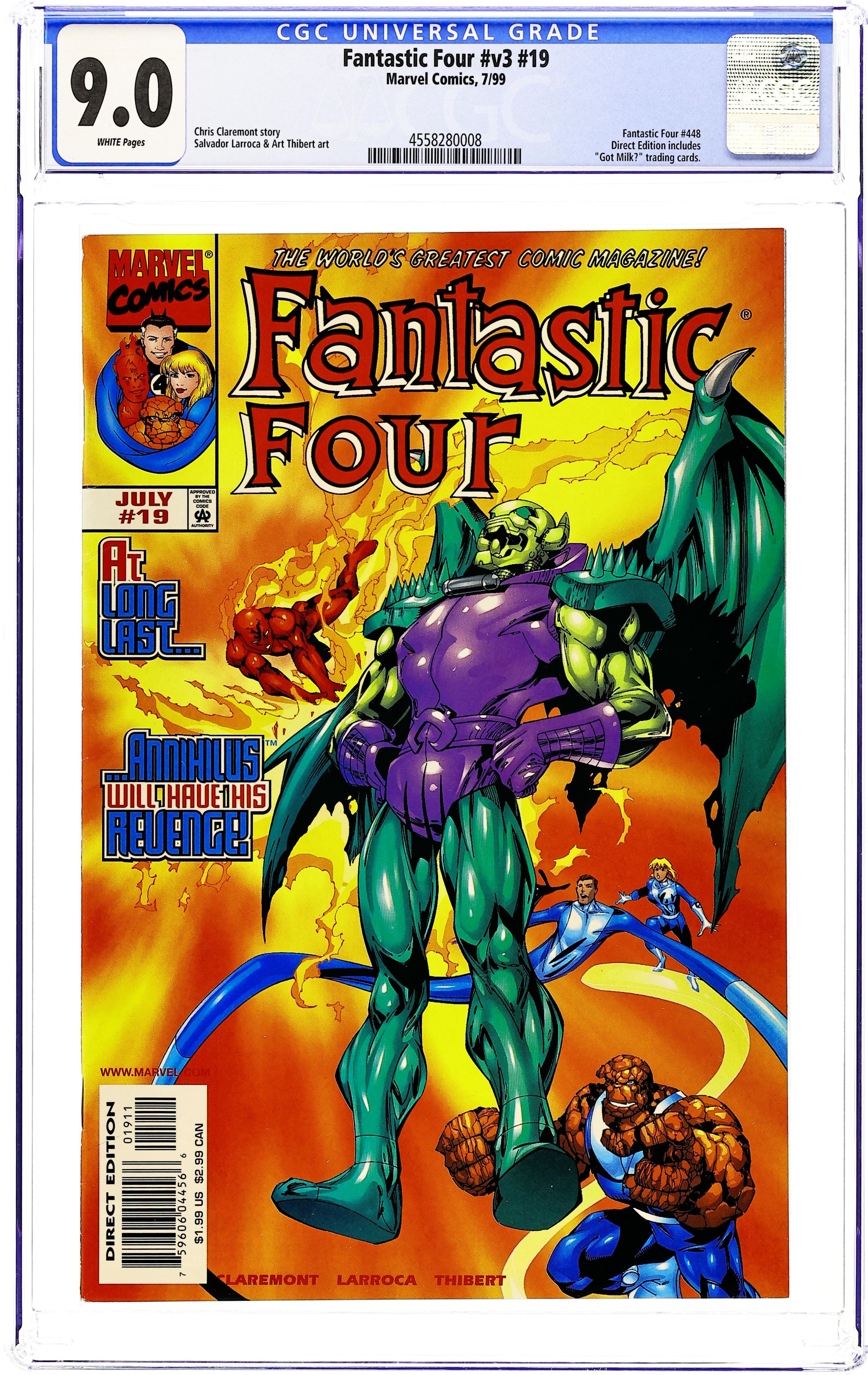 Direct Edition. Down & Out in the Negative Zone, script by Chris Claremont, pencils by Salvador Larroca, inks by Art Thibert; The FF arrive on Annihilus' throneworld; Reed searches for hardware that Annihilus stole from Four Freedoms Plaza, while Ben, Sue, and Johnny battle Annihilus; their combined skills bring them home, to learn that Paris has been overtaken by the Ruined. Day of Decay (part 2) starring the Kidz Water Hydrators, script by Michael Stewart, pencils by Al Milgrom, inks by Al Gordon. 36 pgs. $1.99. Cover price $1.99.
