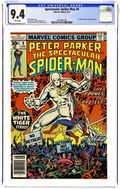 Tags: Marvel Legacy Numbering: Spectacular Spider-Man (part 9), Spider-Man$30.00"Like a Tiger in the Night!" Part 1 of 2. First color comic appearance of the White Tiger. Script by Bill Mantlo. Art by Sal Buscema (breakdowns) and Mike Esposito (finishes). Cover by George Perez and Frank Giacoia. The Empire State University president is closing down the campus' night school, and the student body is very upset! The students want ESU to sell the prized Erskine Manuscripts to raise money. When the White Tiger apparently steals the manuscripts, tempers on campus reach a boiling point...and also set the White Tiger and the web-slinger on a collision course! Flashback cameos by Iron Fist, Jack of Hearts, Shang-Chi, the Prowler, and the Sons of the Tiger to recap the White Tiger's past adventures. (Notes: The White Tiger previously appeared in many issues of the black-and-white Deadly Hands of Kung Fu series. A 35-cent cover price variant exists for this issue.) 32 pages Cover price $0.30.