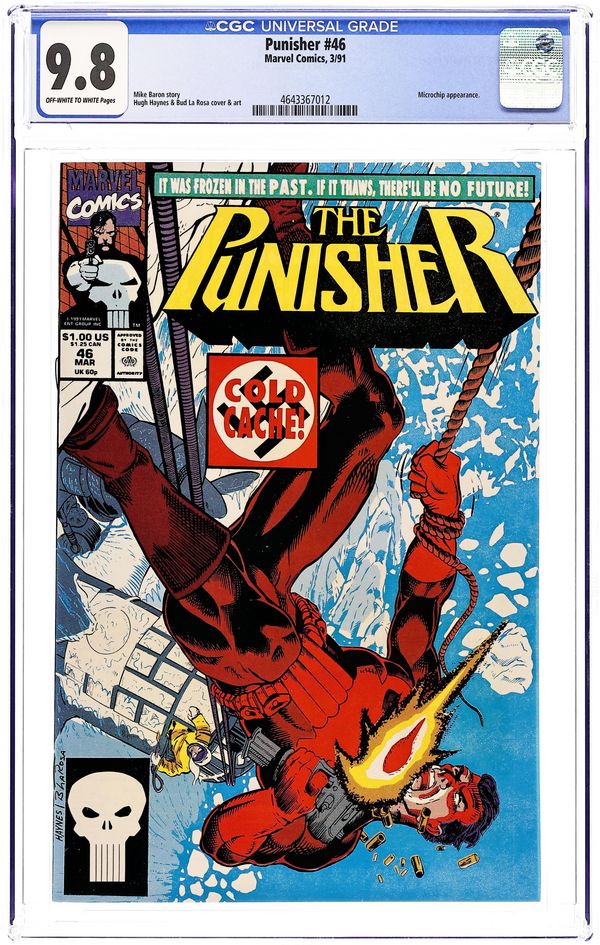 Direct Edition. Cover art by Hugh Haynes and Bud La Rosa. Cold Cache, script by Mike Baron, pencils by Hugh Haynes, inks by Bob Wiacek, Bud La Rosa, Jimmy Palmiotti, Vince Evans, Rodney Ramos, Santiago Oliveras, Kevin Kobasic, Ariane Lenshoek, and Ed Lazellari; Punisher tries to procure a particle beam created by Microchip's dad during WWII before a group of neo Nazis can get it. 36 pgs. $1.00. Cover price $1.00.