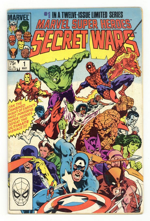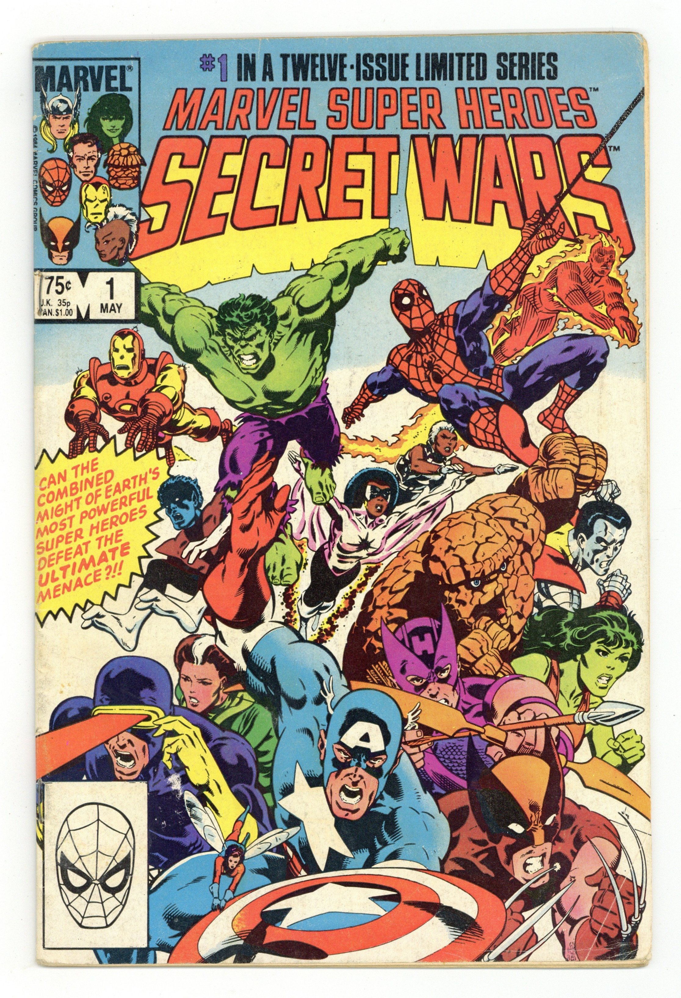Ends Jan 15 8:41 PM CST Bid History 11 bids Current Bid $231 Your Secret Max Bid If you'd like to bid, please log in or register. Direct Edition. "The War Begins!" Part 1 of 12. Story by Jim Shooter. Art by Mike Zeck and John Beatty. This is it, the granddaddy of all epic events. Before Identity Crisis, Infinite Crisis, House of M, Civil War, and Infinity Gauntlet there was Secret Wars. A nigh omnipotent being from beyond has, for lack of a better word, kidnapped the greatest heroes and deadliest villains in the Marvel Universe and whisked them to the far side of the universe to battle for the ultimate prize. One thing is for certain, the lives of these heroes and villains will never be the same again. - This is the first printing. Any 2nd printing will have the words "Second Printing" at the bottom of the first page. NOTE: Nearly all first printings contain a "Blue Galactus" from a printing error (a lack of magenta printing plates) that was corrected in later printings. While small number of First printings may have the correct colors, the majority of copies will have "Blue Galactus". Due to the frequency, "Blue Galactus" variants should be treated the same as other First Printings. 36 pages, full color. Cover price $0.75.