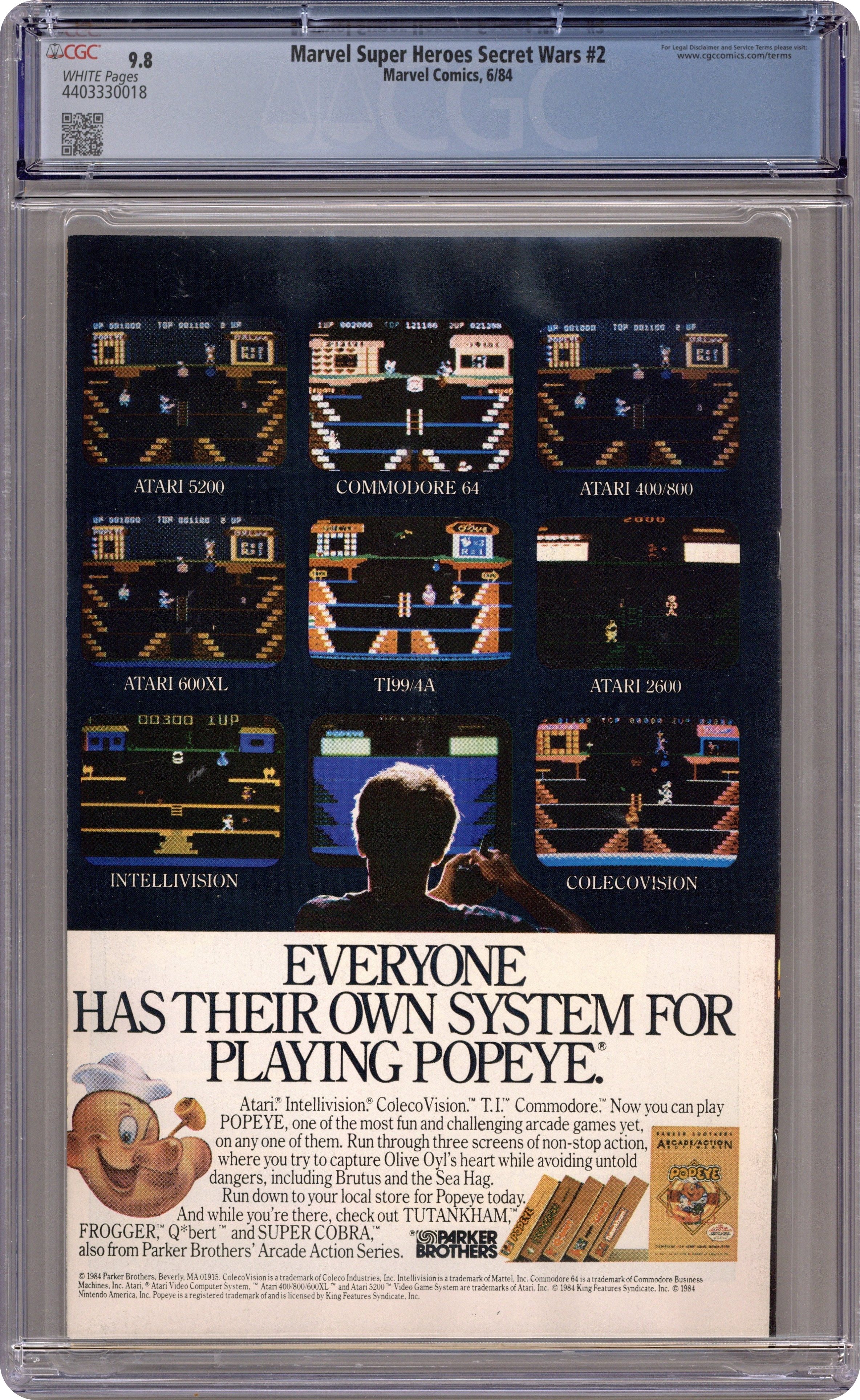 Tags: Secret Wars (1984) (part 2)$15.00First Printing. Direct Edition. "Prisoners of War!" Part 2 of 12. Story by Jim Shooter. Art by Mike Zeck and John Beatty. On the far side of the universe on a planet simply known as Battleworld, the Avengers (Captain America, Thor, Wasp, Iron Man (James Rhodes), She Hulk, and Captain Marvel), the Fantastic Four (minus the Invisible Woman), X-Men (Professor X, Wolverine, Cyclops, Storm, Nightcrawler, Rogue, and Colossus), Magneto, Spider-Man, and the Incredible Hulk are locked in mortal combat with Doctor Doom, Ultron, Absorbing Man, the Lizard, Molecule Man, Doctor Octopus, Kang the Conqueror, the Wrecking Crew, and the Enchantress. The villains strike first in an unrelenting blitzkrieg. Will the heroes even survive the first titanic battle of this epic struggle? Plus, how do wildcards Magneto and the space god Galactus fit into this game? 36 pages, full color. Cover price $0.75.