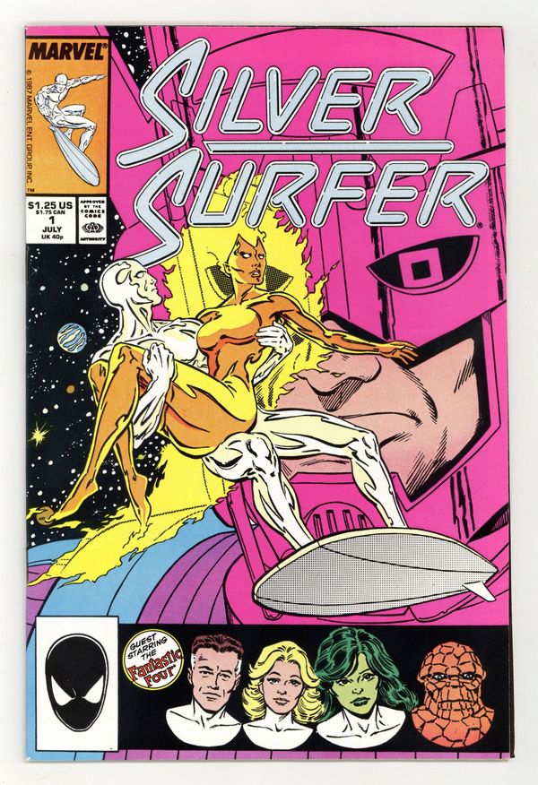 Direct Edition. "Free!" Guest-starring the Fantastic Four and Galactus. Story by Steve Englehart. Art by Marshall Rogers and Joe Rubinstein. Many years ago, in order to prevent the total annihilation of his civilization and homeworld, Norrin Radd bargained with the Devourer of Worlds. Imbued with the Power Cosmic, he became the Silver Surfer and Herald of Galactus. However, on the fateful day he arrived on Earth, for love of humanity, he betrayed his master, and thus was cursed to never traverse the spaceways again. Now, after many years of exile, will the Silver Surfer finally be free to soar the heavens again? Plus, witness the savage attack of Champion, an Elder of the Universe (last seen in Marvel Two in One (1974) Annual #7), as events are set in motion for the next 10 issues. 48 pages. Cover price $1.25.