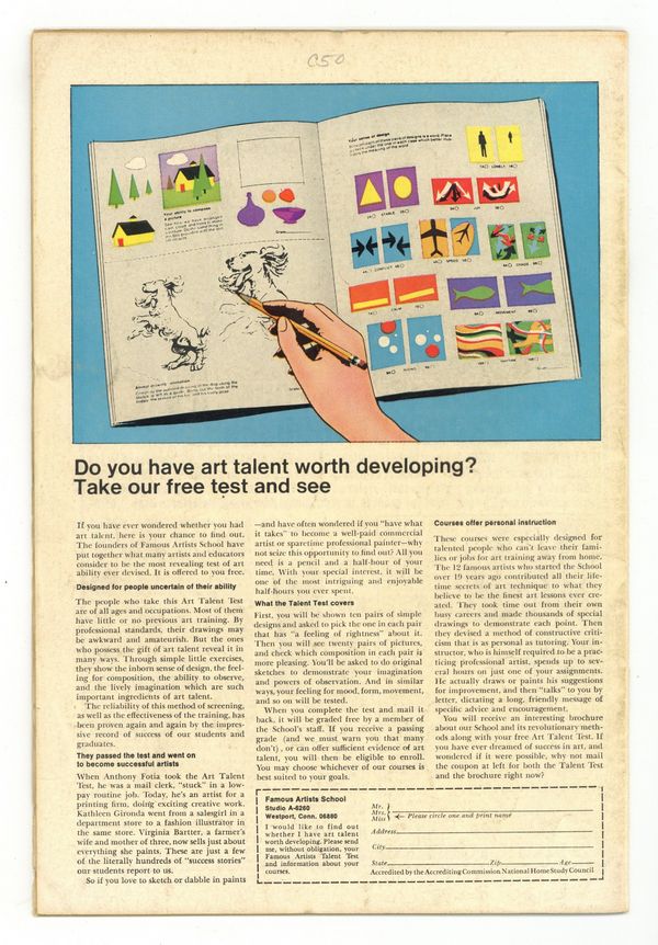 Starts Later today "On the Trail of the Chameleon!" Script by Stan Lee. Art by John Buscema (layouts) and Jim Mooney (finishes). Cover by John Romita. Peter Parker and Gwen Stacy meet for a date at the Midtown Museum to see its new exhibit of priceless paintings. And also at the museum is Gwen's father...who is in charge of security for the evening. So when the paintings are shockingly stolen, Captain Stacy gets blamed for the theft! Peter knows the trusted police captain would never do that. So who did? Ultimately, the web-slinger remembers the name of the Chameleon...and sets a trap for the master of disguise! However the Chameleon is crafty, and he eludes Spider-Man's trap -- until the faceless villain makes a very big mistake! Cameo appearances by Flash Thompson, Harry Osborn, J. Jonah Jameson, and Joe Robertson. (Notes: The wall-crawler previously encountered the Chameleon in Amazing Spider-Man (1st series) #15. This story was reprinted in Marvel Tales #61.) 36 pages. Cover price $0.15.