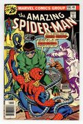 Tags: Marvel Legacy Numbering: Amazing Spider-Man (part 158), Spider-Man$17.25"Hammerhead is Out!" Part 2 of 3. Script by Len Wein. Pencils by Ross Andru. Inks by Mike Esposito. Cover by Ross Andru and Frank Giacoia. After surviving his free fall from the helicopter, the wondrous wall-crawler continues his pursuit of Dr. Octopus and Aunt May! The six-armed super-villain takes refuge at Brookhaven National Laboratory to draw Hammerhead's ghost into a deadly trap! But the sudden arrival of the web-slinger throws off Doc Ock's plan! Instead of destroying the ghost, Octopus' equipment returns Hammerhead to flesh and blood! And that sets the stage for the next issue's three-sided tussle: Doctor Octopus vs. Hammerhead vs. your friendly neighborhood Spider-Man! Cameo appearances by Mary Jane Watson, Glory Grant, Joe Robertson, and J. Jonah Jameson. (Notes: This issue contains a full-page ad for Hostess Twinkies featuring Captain America vs. the Red Skull. This story was reprinted in Marvel Tales 135. A 30-cent cover price variant exists for this issue.) 36 pages. Cover price $0.25.