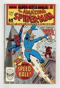 $9.50"Drug War Rages" Guest-starring Daredevil and Speedball. Part 5 of the Evolutionary War storyline. First appearance of Speedball. Plot by Tom DeFalco. Script by David Michelinie. Pencils by Mark Bagley. Inks by Mike Esposito. Cover by Ron Frenz and Joe Rubinstein. What begins as a simple drug bust in a west side warehouse...escalates into a battle atop the Empire State Building to save the lives of everyone in the Big Apple! Along the way the Amazing Spider-Man teams up with a familiar ally, the Man Without Fear; and meets a new superhero: Speedball (aka Robbie Baldwin)! The High Evolutionary wants to sterilize New York's population to eradicate DNA strands deemed to be undesirable! Can the web-slinger, Daredevil, and Speedball defeat the Purifiers and maintain the gene pool status quo? The Evolutionary War storyline continues in Fantastic Four Annual 21. Appearances by the Kingpin, Arranger, Madeline Naylor, Mary Jane Watson, Ben Urich, and J. Jonah Jameson. First backup story: "He Who Laughs..." Plot by Steve Ditko. Script by Roger Stern. Pencils by Steve Ditko. Inks by Jackson Guice. Speedball battles a crazy stagehand seeking revenge against his mother. Second backup story: "Kindred Spirits" Story by Mark Gruenwald. Pencils by Ron Lim. Inks by Tony DeZuniga. Chapter 6 of the High Evolutionary's history. Inside his Wundagore Mountain citadel, Edgar Wyndham creates Bova -- the future nanny of Quicksilver and the Scarlet Witch; and foolishly ignores Magnus' warning that the spirit of Chthon is bound to Wundagore Mountain. First backup feature: Spider-Man and J. Jonah Jameson pin-up by Larry Lieber and Frank Giacoia. Second backup feature: 2-page diagram of Peter and Mary Jane's Bedford Towers apartment. Third backup feature: Two unpublished Amazing Spider-Man covers -- the first by Larry Lieber & Jack Abel; the second by Bob Layton. (Note: Fantastic Four Annual 21 is the 6th part of the Evolutionary War storyline, but the 5th chapter of the history presented in the backup stories.) 68 pages. Cover price $1.75.