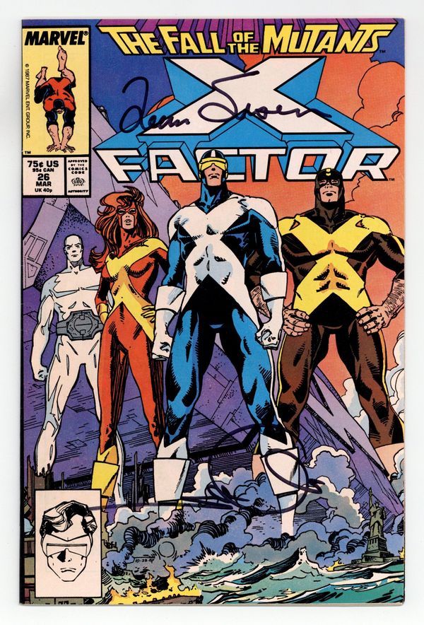 Tags: Fall of The Mutants (part 14)$39.99- Signed by Walt and Louise Simonson. No autograph certification is included. Cover oxidation.