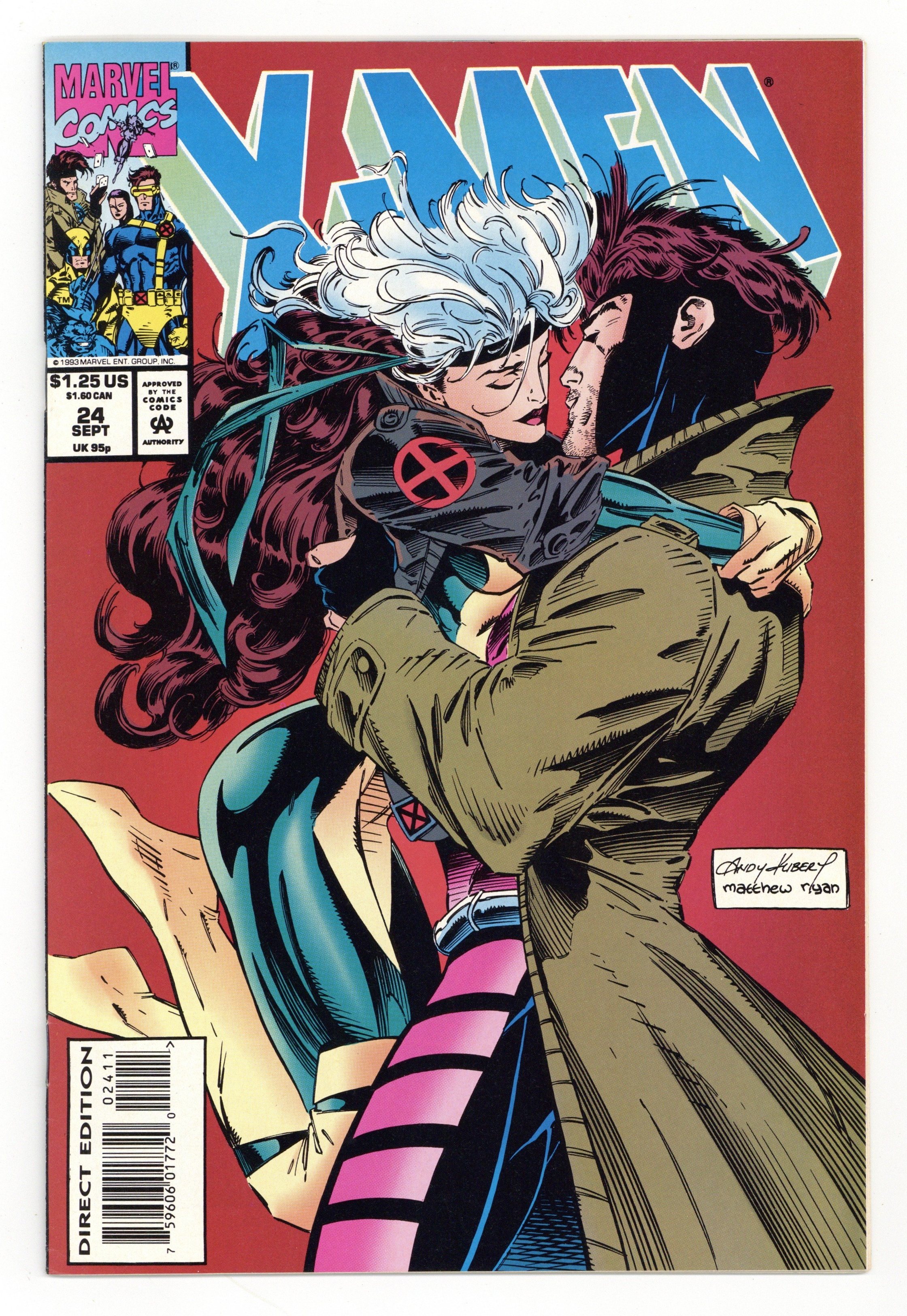 Direct Edition. Cover pencils by Andy Kubert, inks by Matt Ryan. Digging Deeper Between Hope and Sorrow, script by Fabian Nicieza, pencils by Andy Kubert, inks by Bill Sienkiewicz; Jubilee mourns Ilyana; Rogue and Gambit go on a date; Betsy and Kwannon try to decide who's who; Cont. from Uncanny X-Men #303; Cont. in Uncanny X-Men #304. 36 pgs. $1.25. Cover price $1.25.