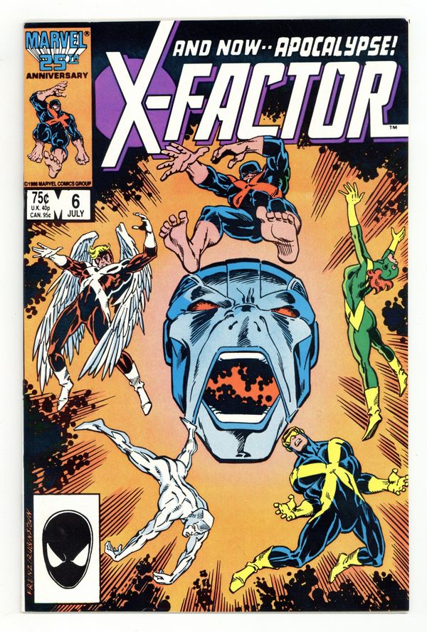Direct Edition. "Apocalypse Now!" Part 2 of 2. 1st full appearance of Apocalypse. Story by Louise Simonson. Art by Jackson Guice and Bob McLeod. Cover by Ron Frenz and Joe Rubinstein. Cyclops begins to worry that the group's X-Factor ads are fueling mutant paranoia among humans. Plus, the last time X-Factor fought the Alliance of Evil they were soundly defeated. Can they take down their adversaries in time to save the life of a fellow mutant, before it's too late? And, witness the fury and power of Apocalypse, a mutant tyrant who believes in a world where only the strong survive. Cover price $0.75.
