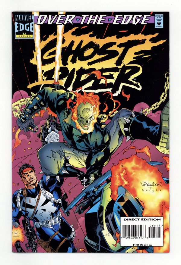 Direct Edition. In Chains: Part 4 of 4 - Over the Edge: Part 3 of 6 - "Countdown!" Guest-starring the Avengers, Nick Fury and Punisher. Written by Howard Mackie. Art by Salvador Larroca. Story continued from Daredevil (1964-1998 1st Series) #344. All hell breaks loose as Ghost Rider, Nick Fury, the Punisher, Spook, Scarecrow, and the Avengers all collide in a no holds barred free-for-all! 32 pages, FC. NOTE: Avengers Role Call: Crystal, Quicksilver, Black Widow, Hercules, and Deathcry.