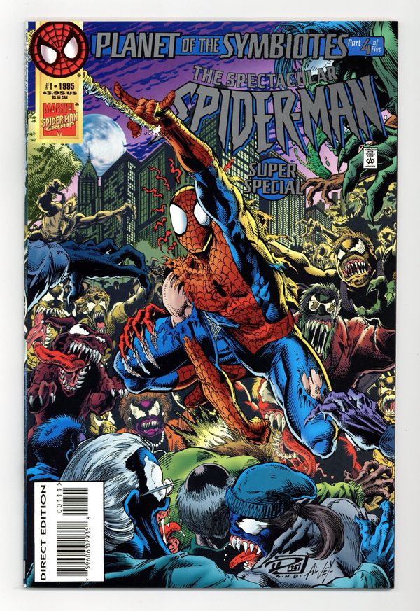Direct Edition. Story by David Michelinie and Terry Kavanagh. Art by Claude St. Aubin and Darick Robertson. Cover by Darick Robertson. Planet of the Symbiotes Part 4 of 5. "Scarlet Spider" flip-book on other cover. Cover price $3.95.