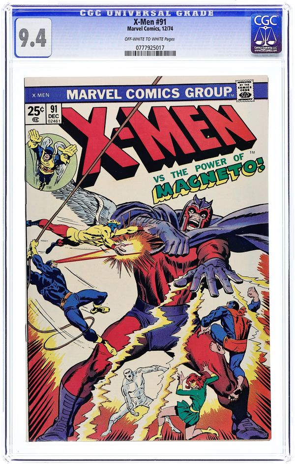 Cover pencils by John Buscema. The Torch is Passed...!, script by Roy Thomas and Stan Lee, pencils by George Tuska and Steve Ditko, inks by John Tartaglione; The X-Men attend Professor X's funeral and are surprised when Quicksilver shows up; Returning to the mansion, the X-Men are greeted by a posthumous message from Xavier passing the torch on to his students; Quicksilver returns to Magneto's lair and is plagied with doubt about leaving the Avengers to rejoin his old master but fears for his sister's health; The X-Men lay a trap and attack Magneto and his Brotherhood but the bad guys quickly gain the upper hand; reprinted from issue 42. Journey's End, script by Stan Lee, art by Steve Ditko; A crook ends up killing a night watchman and flees into the past in a time machine where he has a violent encounter with the machine's creator; reprinted from Amazing Adult Fantasy #7. 36 pgs. $0.25. Cover price $0.25.