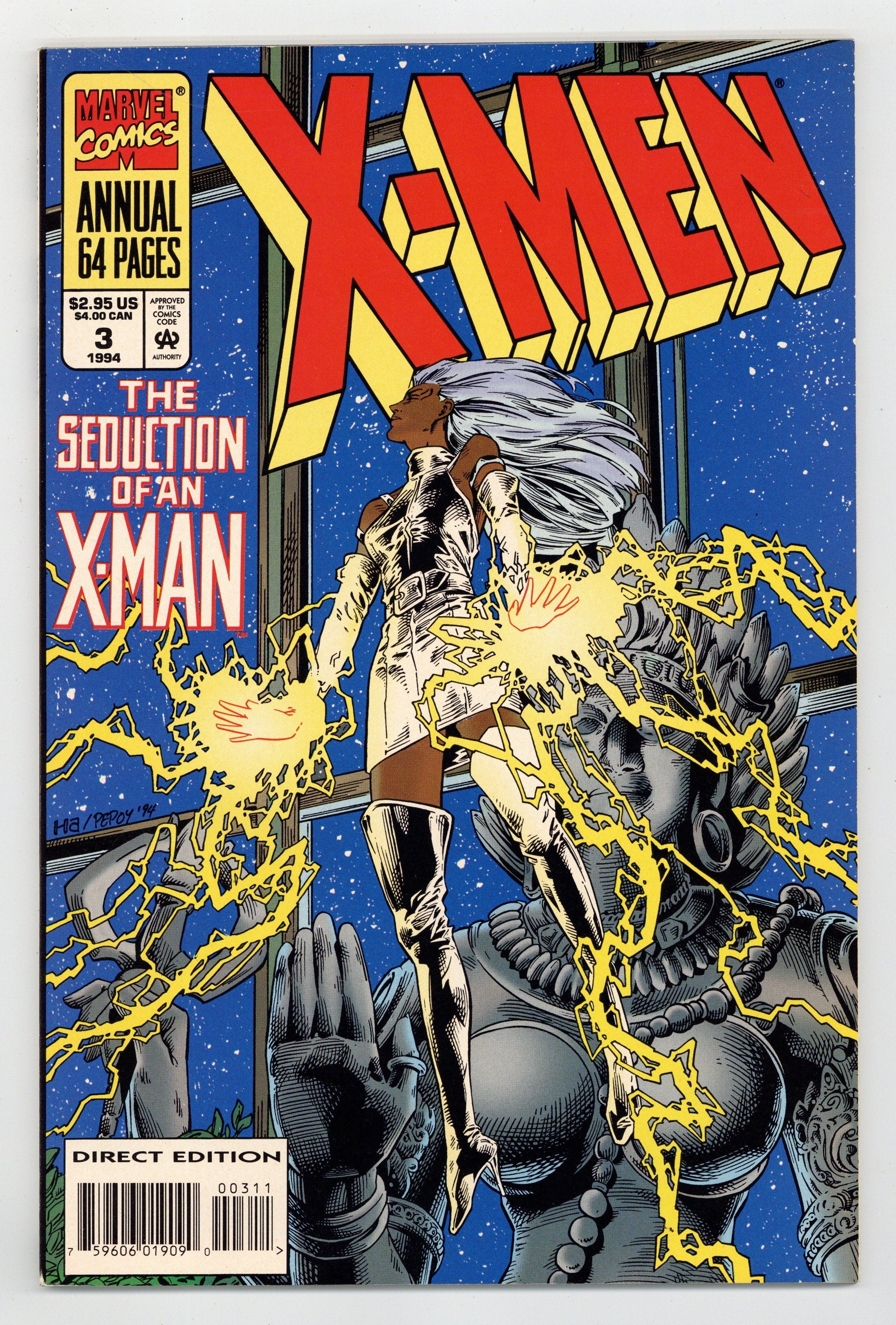 $15.50Storm stars in "Heart & Soul." Script by Ian Edginton, pencils by Gene Ha, inks by Joe Rubinstein, Dan Green, Bob Wiacek, Sellers, Pepoy, and Moy. "A Moment of Silence." Script by Jim Krueger, art by Steve Yowell. Pin-ups by Scott McDaniel, Neil McLuty, Jim Callahan/Kevin Conrad, Mark Pacella/Tom Palmer, Amanda Conner/Cam Smith, Bryan Lee, and Bryan Hitch. Ha/Pepoy cover. Cover price $2.95.