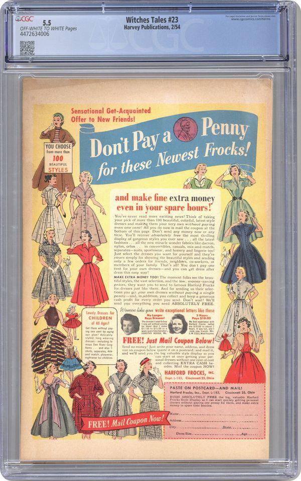 Published Feb 1954 by Witches Tales.$505.00- Paper: Off white to white