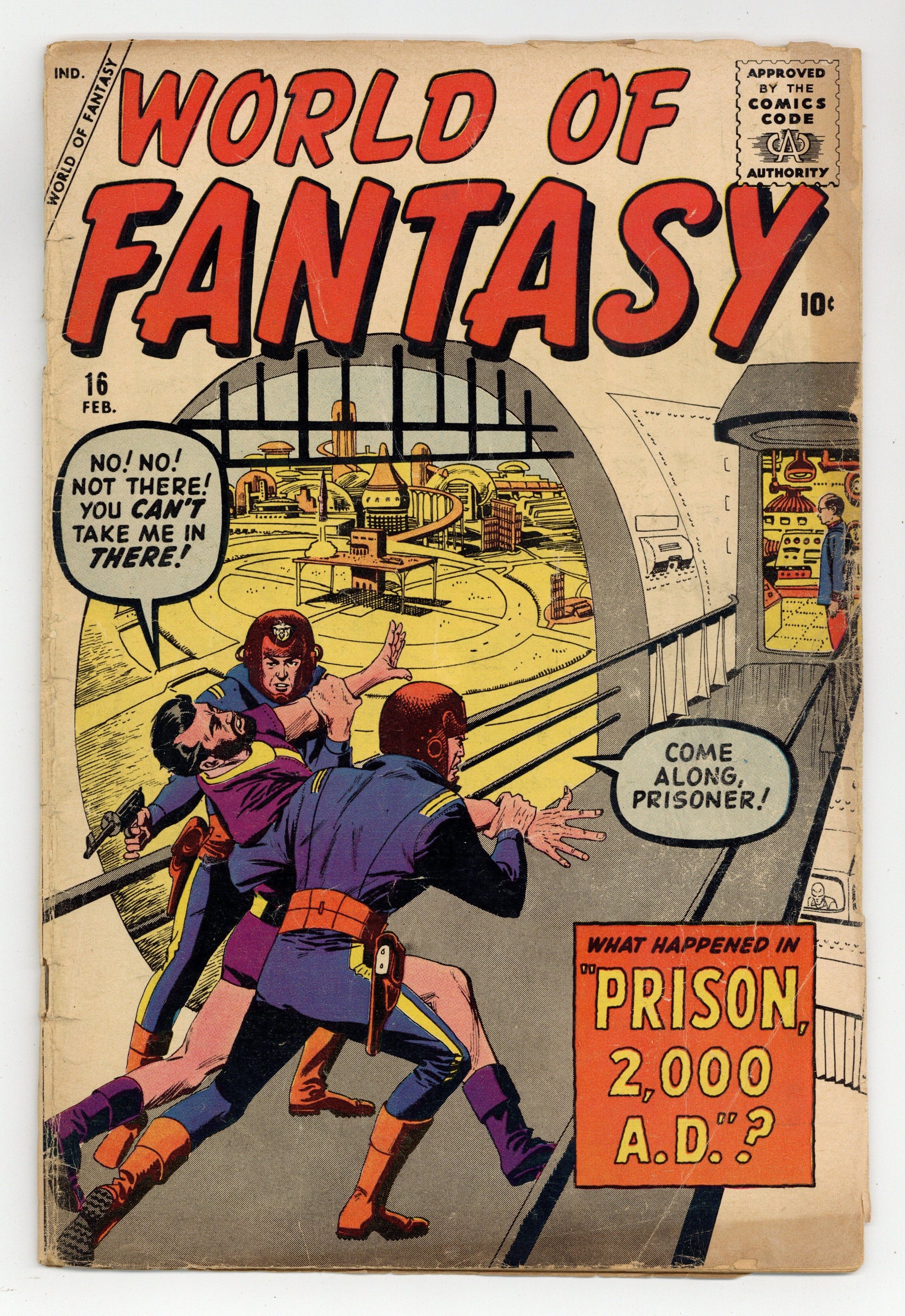 Nightmare Planet, art by Joe Sinnott; Earth is terrified by the approach of a giant planet, but a military expedition finds that time moves more slowly on this planet, so they will not notice Earth. Bird Talk text story. Arise, Oh Geni..., art by Steve Ditko; A man with hay fever releases a hostile genie with plans of conquest from a lamp, but the genie contracts hay fever from his liberator. Worlds Within Worlds!; A scientist is convinced that there are microscopic worlds inside microbes. Beware the Future!, art by Al Williamson. Prison 2000 A.D., pencils by Jack Kirby, inks by Christopher Rule. 36 pgs. $0.10. Cover price $0.10.
