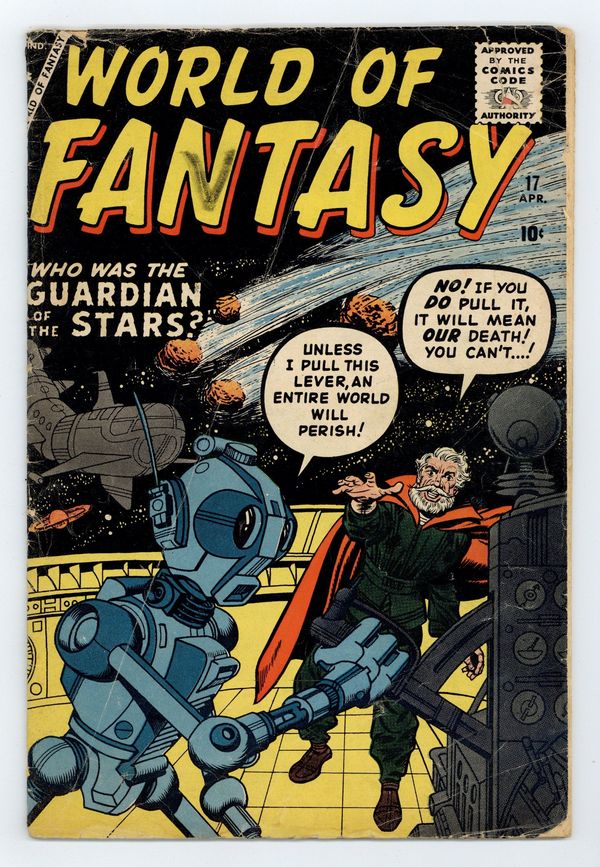 Cover pencils by Jack Kirby, inks by Christopher Rule. It Hides in the Forest!, art by Joe Sinnott. When a Planet Dies!, art by Don Heck. The Man From Tomorrow!, art by Carl Burgos. The Brain Picker!, pencils by Matt Baker, inks by Vince Colletta. Guardian of the Stars!, art by Steve Ditko; a robot must pull a lever or a world will perish. 36 pgs. $0.10. Cover price $0.10.