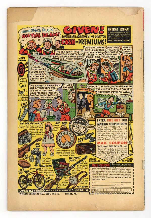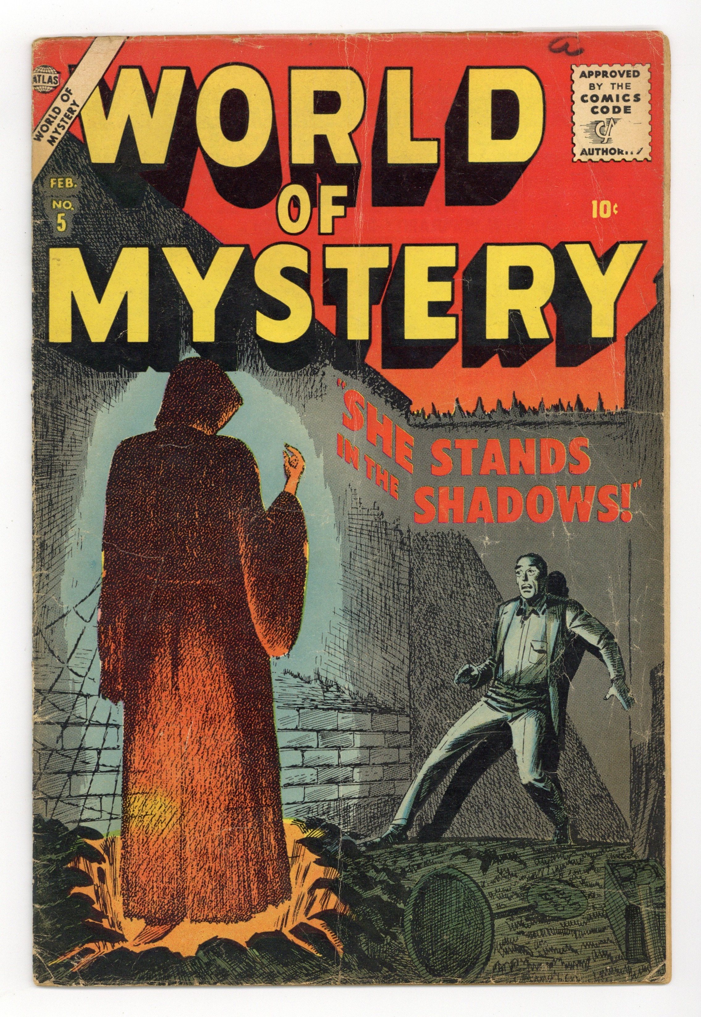"She Stands in the Shadows" (art by Joe Orlando), "Nelson's Nightmare," "The Thing in the Bottle" (art by Herb Hamilton), "The Bottomless Box," "Human for a Day," and "The Voice From Nowhere" (art by John Forte), plus a two-page text story, "The Sound of Trouble." Cover price $0.10.