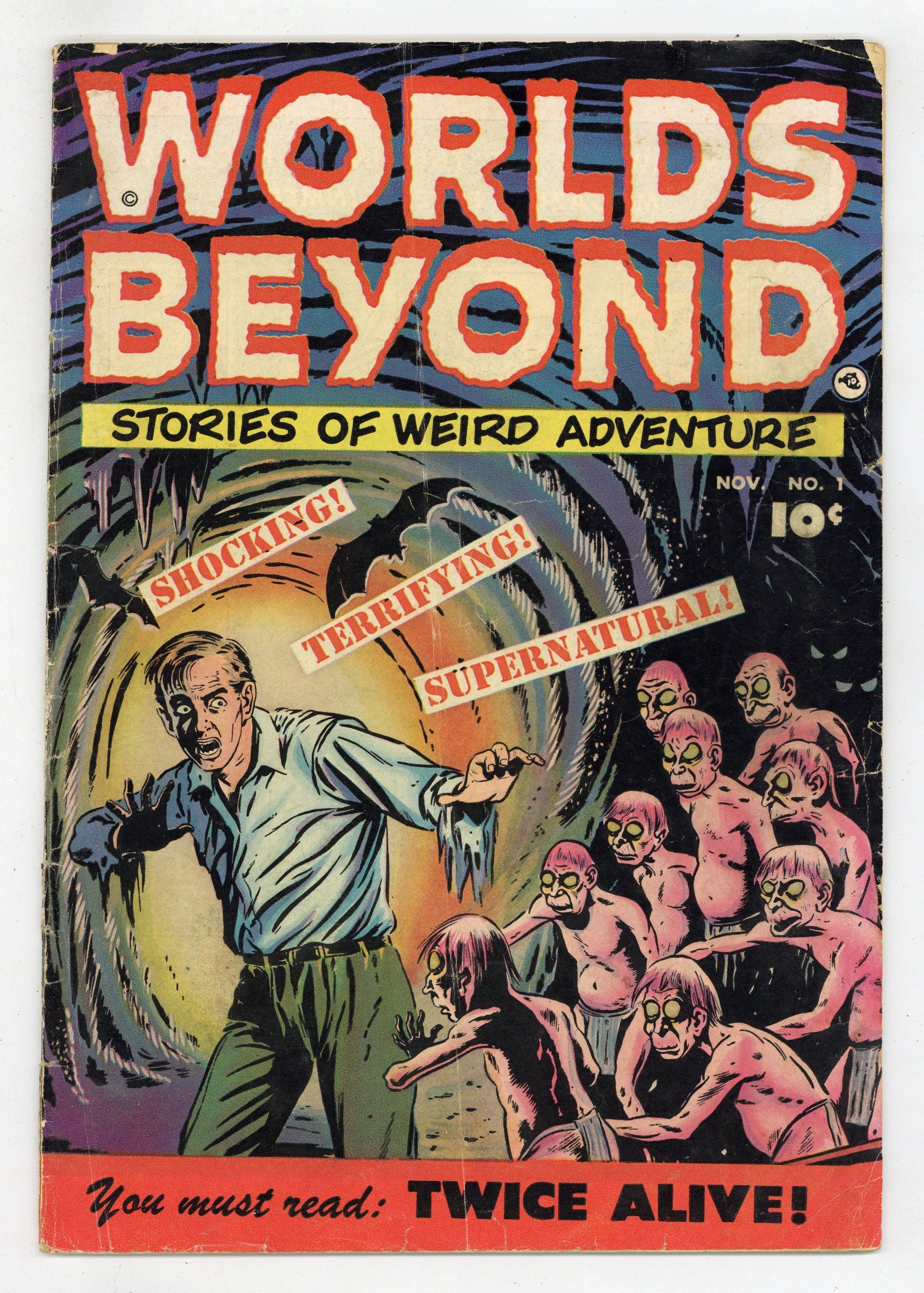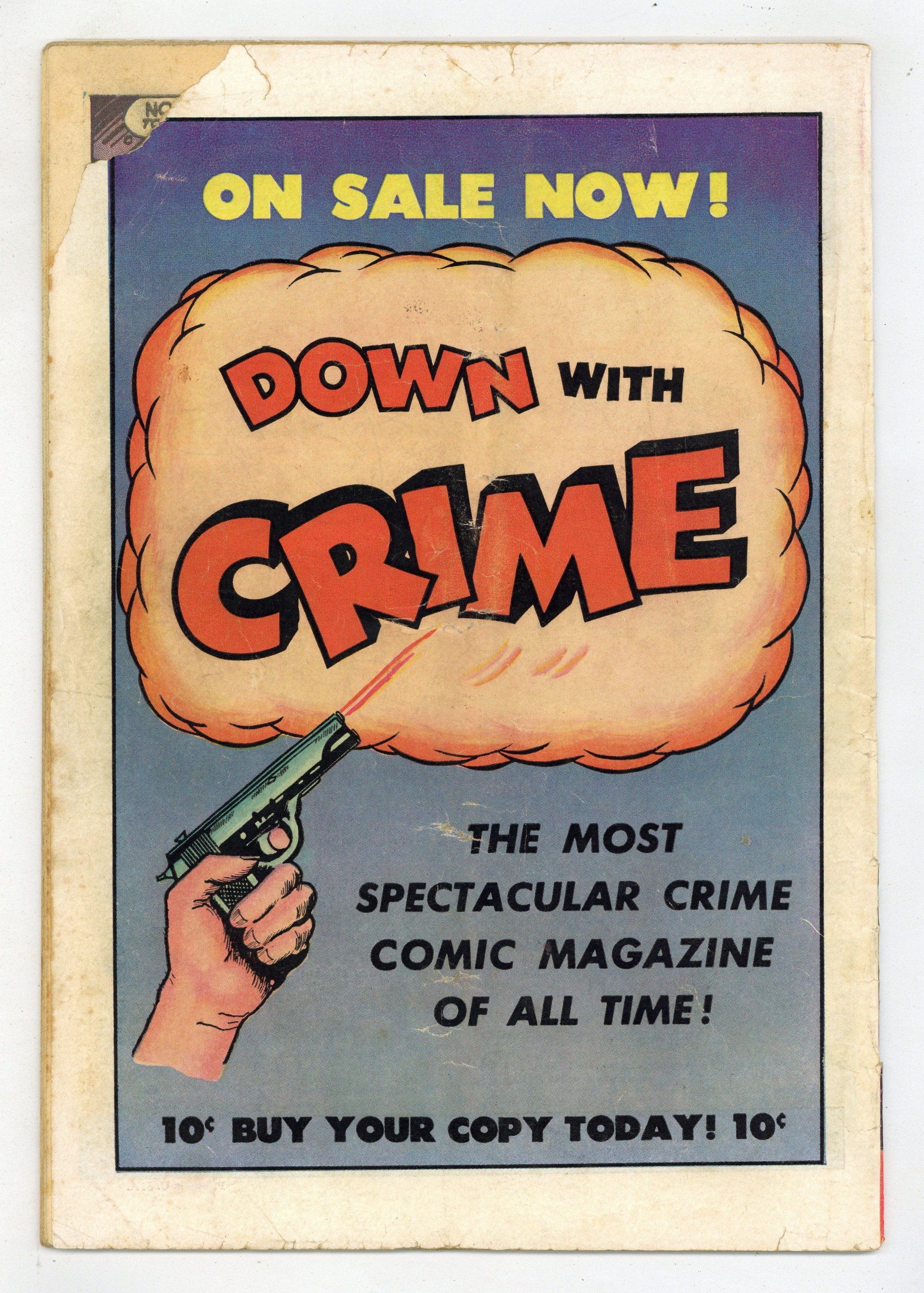 Cover art by Sheldon Moldoff. "Doorway to Horror," art by Sheldon Moldoff; Art collector Lyle Bagett enters a cursed house and is drawn into the reenactment of a fiendish crime: a painter murdered by his wife, whilst she painted his demise. "Twice Alive!", art by Bob Powell; Mitchell Ames dies on the operating table and journeys through his own body - meeting his ancestors there and being prosecuted by the angel of death; When the doctors manage to revive him, everybody is in for a big surprise. "A Favour Returned" text story by Arthur Sachary; A man enlists the services of a witch to put a voodoo hex on his partner. "Vengeance of the Living Dead," art by Bernard Baily; The pilot Gar Macon (who abandoned his doomed plane above the jungle) is forced to relive that plane crash. Down with Crime publisher ad. 36 Pages, Full Color. Cover price $0.10.