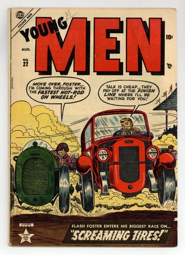 Published Aug 1953 by Marvel/Atlas.$60.00Sol Brodsky cover. "Flash Foster and his High-Gear Hot-Shots!" (A) Ed Moline, "Cave-In" text story (2 pg), "Rex Lane Solver of the Supernatural" (A) George Tuska, "Ricky Steele The Idol of the Ring!" (A) Sy Barry, "Buzz Brand in the United States Army!" (W) Hank Chapman (A) Dick Ayers & Ernie Bache. 36 pages, full color. Cover price $0.10.