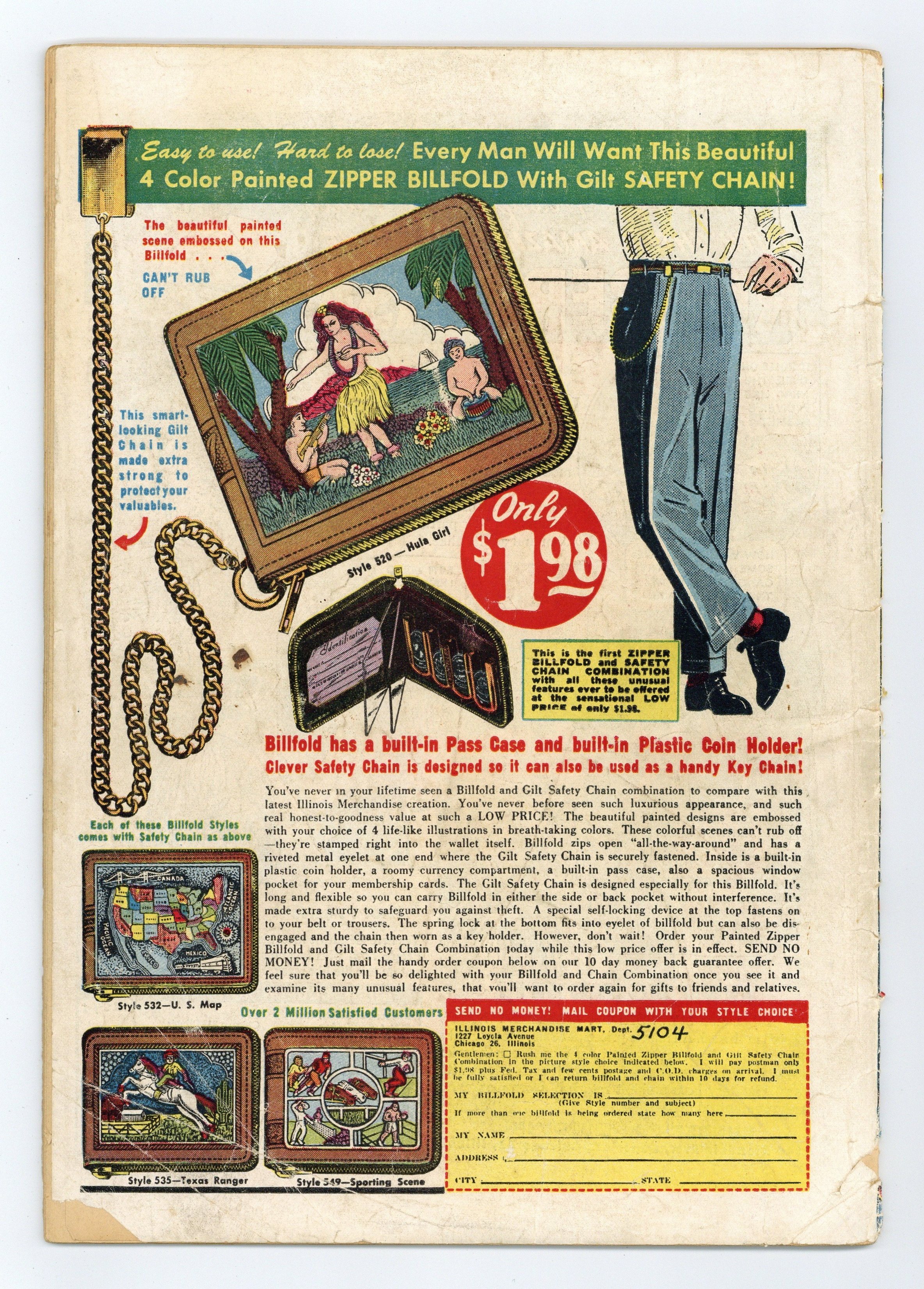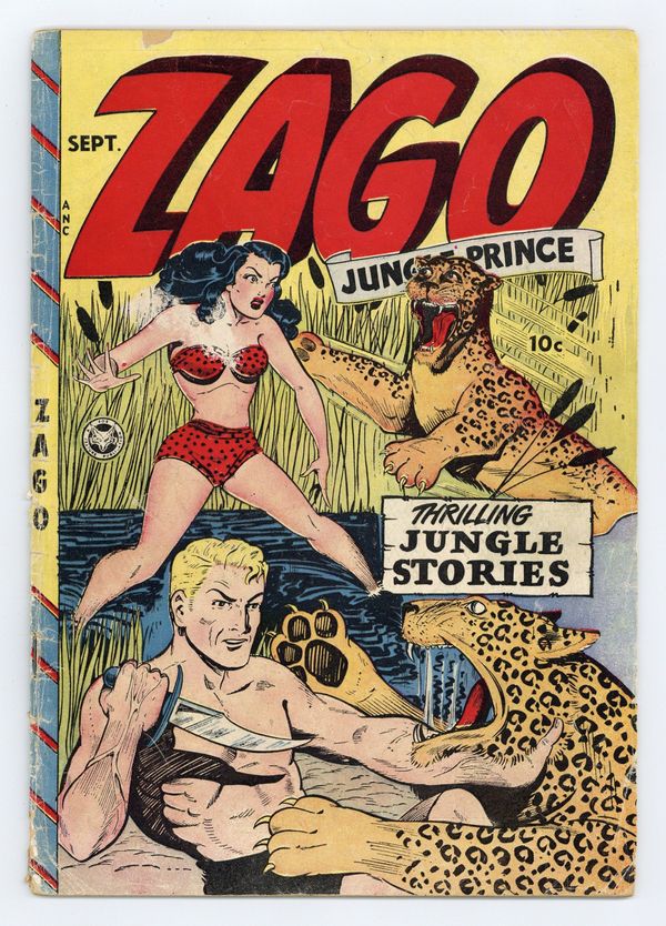 In order of appearance: "Zago Jungle Prince"; "Tony Luck, Jet Junction!" art by Robert Webb, retitled and reprinted with alterations from "Lucky Wings, Japs and Jets", which is reprinted in Jerry Iger's Golden Features (1986) #3 and Wings Comics (1997) #1; "Blue Beetle, The Cobra's Kiss!"; and "Plaid Clad Terror!! Orgy Of Death!". "Poky Ridge Gold" text story reprinted in Hoot Gibson Western (1950) #6. Indicia states "ZAGO". 36 pages. Full color. Cover price $0.10.