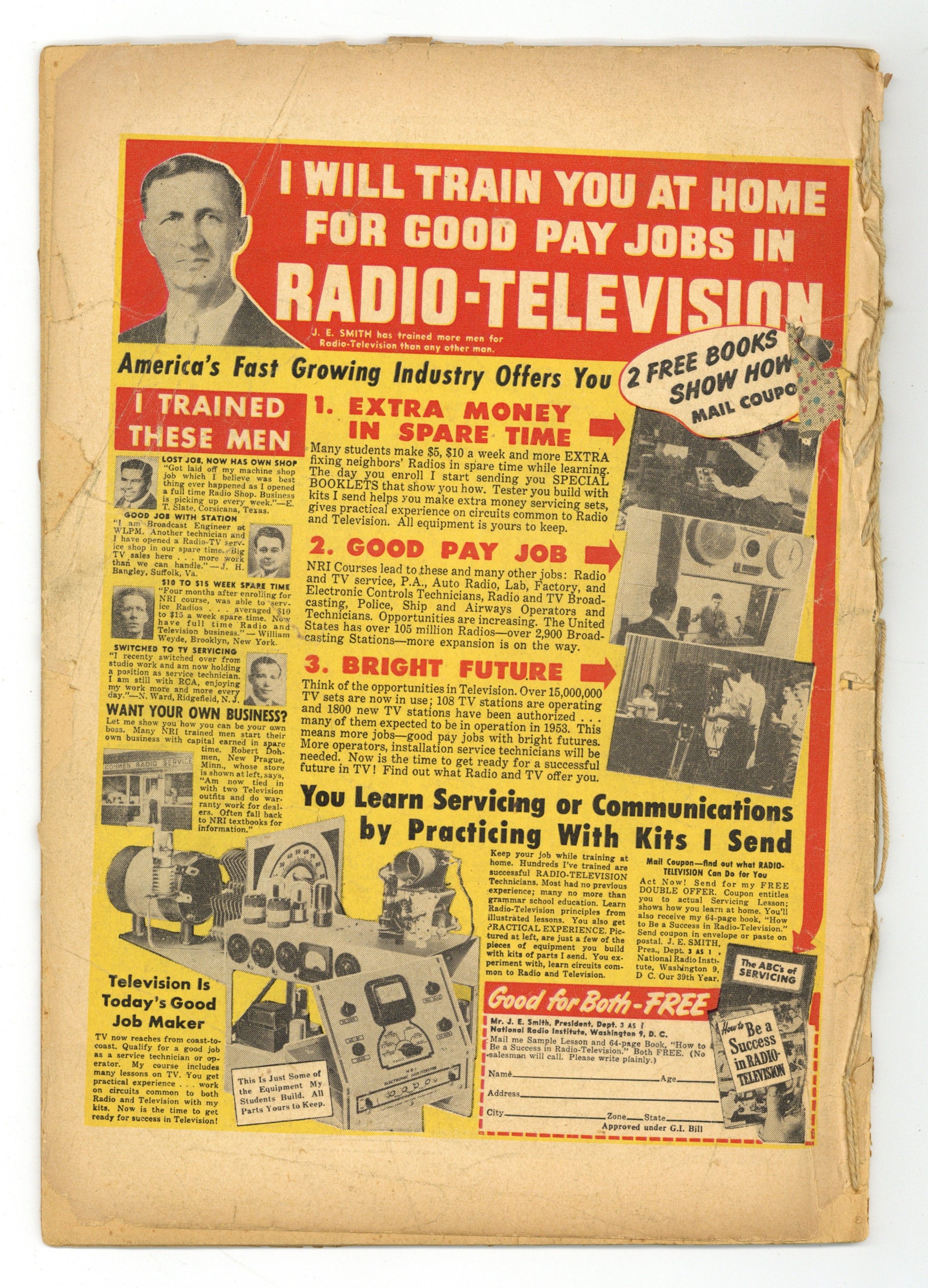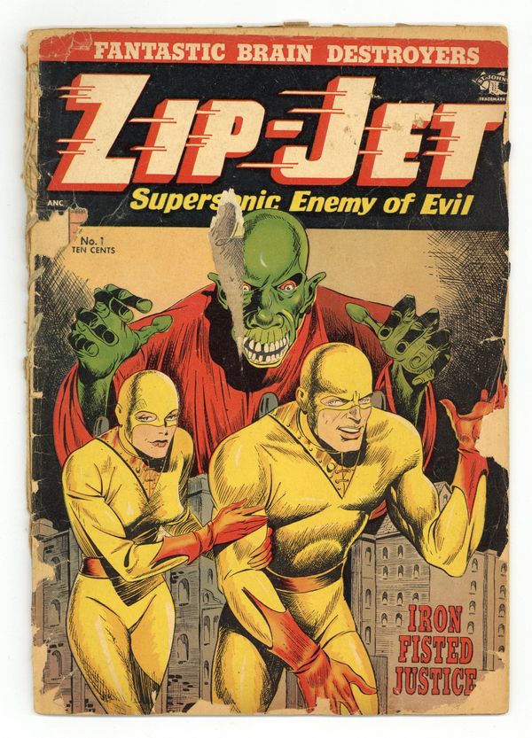 Cover by Ruben Moreira. Stories and art by Ruben Moreira, Al Plastino and Art Pinajian. 1940s Chesler heroes Rocketman and Rocketgirl return in new guises as Zip-Jet and Pat. "Tech" Carson and his "girl Friday" Pat use their "jet powers" against the goblin-like Dr. Keats, who is performing mind-control experiments on the patients in his asylum. Zip-Jet invents the helicopter a few years early, but gangster Killer Craci wants the invention for himself. Zip-Jet and Pat face a vengeful killer who rigs the jury and beats a murder rap. Fantastic Brain Destroyers; Death Stalks The Show; Sinister Seizure; Have You Heard?; Gag Bag; The Cryptic Cache. 32 pages, Full Color. Cover price $0.10.