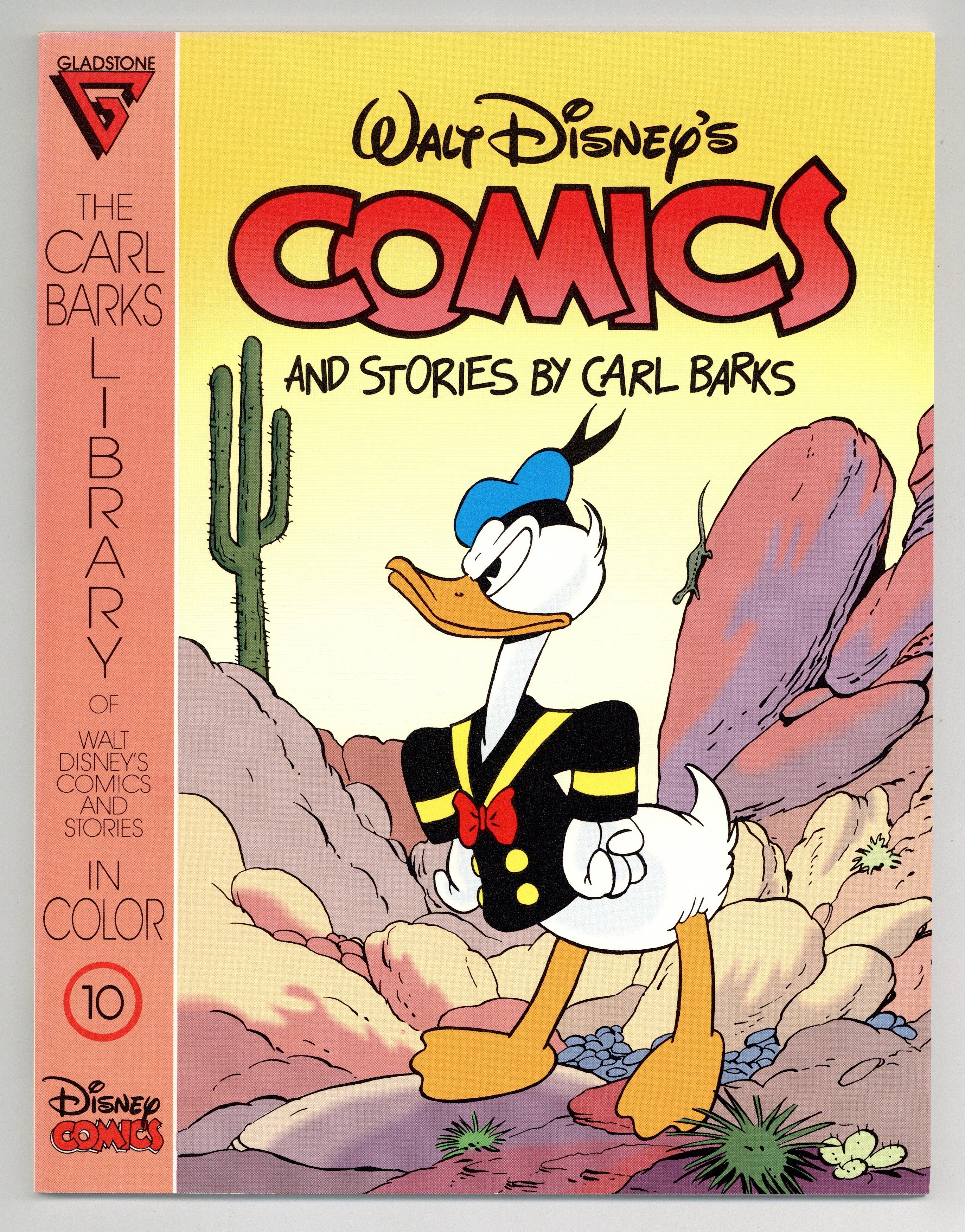 The Carl Barks Library of Walt Disney's Comics and Stories in Color. Volumes in this series are squareboud, 8-1/2 x 11, 60-pgs full color on quality paper stock. Each a fitting tribute to the Carl Barks duck legacy of great comics story telling. Cover art by Carl Barks, all story scripts and art by Barks. Comic Karma article by Donald Ault. "Going Buggy"; The nephews impersonate giant bugs and ravage Donald's garden. "Jam Robbers"; Donald buys a safe. "Picnic Tricks"; The nephews sabotage Donald's and Daisy's picnic. "Donald's Posy Patch"; Donald buys bees to improve his garden. "Donald Mines his Own Business"; Donald stumbles into a missile testing sight in search of gold. 60 pgs., full color. Cover price $8.95.