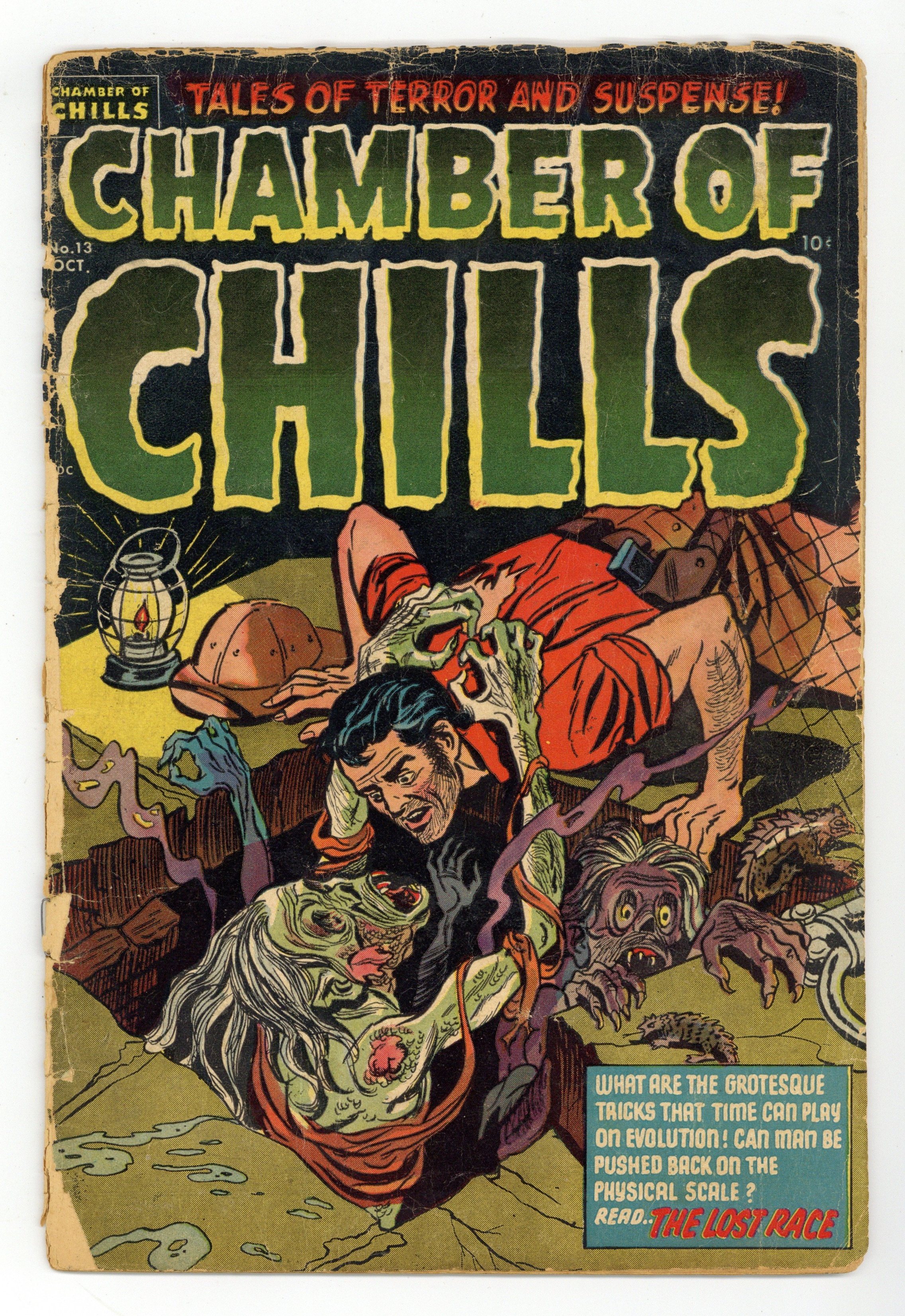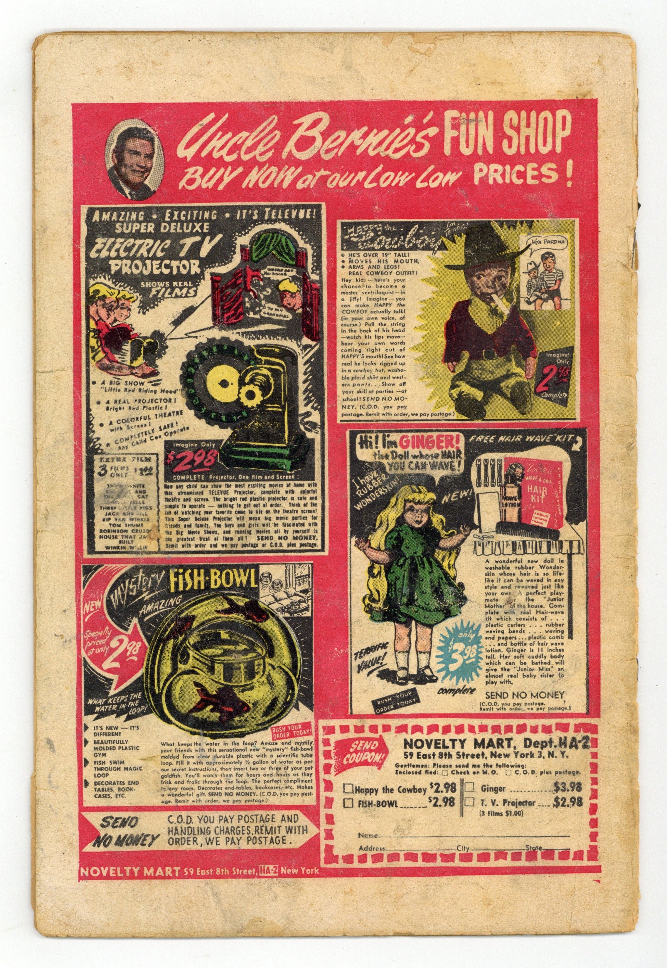 Cover by Al Avison. Stories and art by Bob Powell, Howard Nostrand, Abe Simon, Nat Barnett and Moe Marcus. Harvey Comics joins the parade of pre-Code horror comics pioneered by EC in the 1950s. A scientist descends into a pit of primitive creatures in Africa. An explorer climbs inside a gigantic statue before realizing it's actually a living giant. Treasure hunters are pursued by deadly ants after stealing sacred gems from an idol. Man in the Hood; The Lost Race; The Man Germ; The Things. 36 pages, full color. Cover price $0.10.