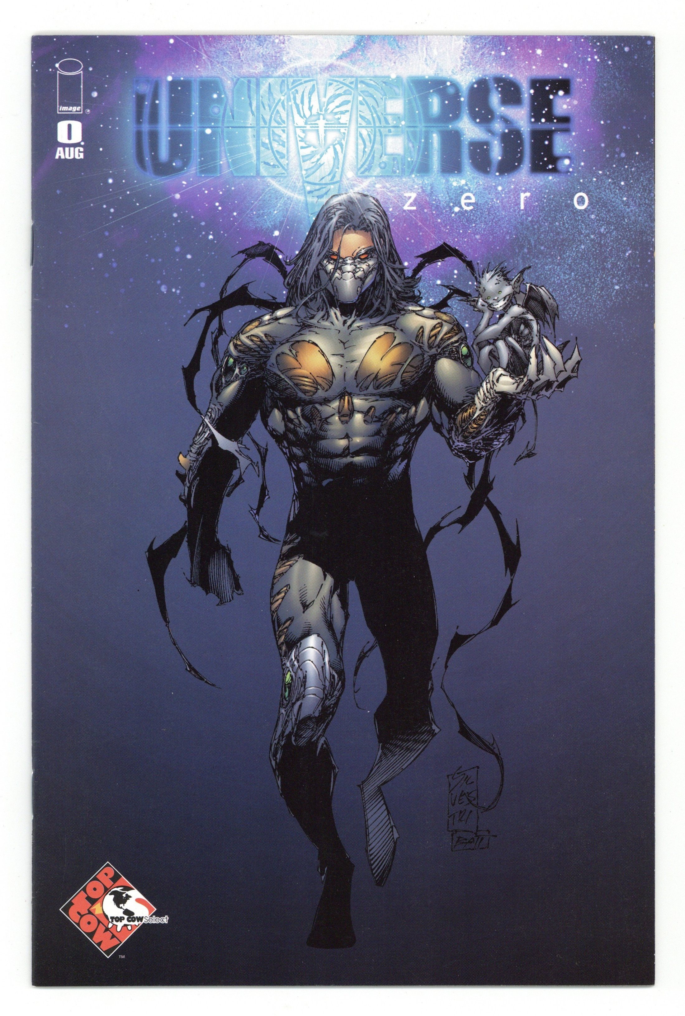 Top Cow Select Darkness #40 variant cover by Mark Silvestri. 2001 Comic Con International Exclusive Alternate Cover. Untitled story, script by Paul Jenkins, pencils by Dale Keown, inks by Jason Gorder and Jay Leisten (assistant); Darkness falls?; The 40th issue of the Darkness is guaranteed to be a shocker as Jackie Estacado finally acknowledges his love for his childhood friend JENNY; Will he make the ULTIMATE SACRIFICE for the one he loves?; DEATH, BLOOD, GORE, SEX and fun are only a few of the elements that will make this the most un-&%#@&^%-ing believable issue of the Darkness yet! 36 pgs., full color.