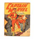 Variant with blank back cover or back cover with a b&w war bonds stamp logo (no color on back). Reprint of two Captain Marvel stories in a smaller booklet format. Stories include "Captain Marvel and the Bumble-Brained Bridegroom" and "The Alaskan Adventure." Newsprint cover and interior, 5" X 4", 36 pages in black, white, and red. Listed as Mighty Midget Comics in Overstreet.